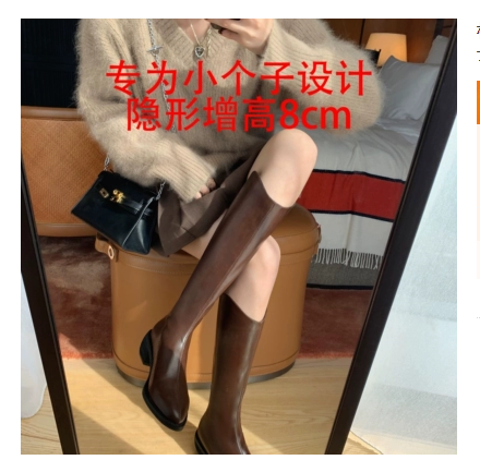 美拉德堆堆长靴女内增高长筒靴显瘦骑士靴西部靴加宽42大码41-43