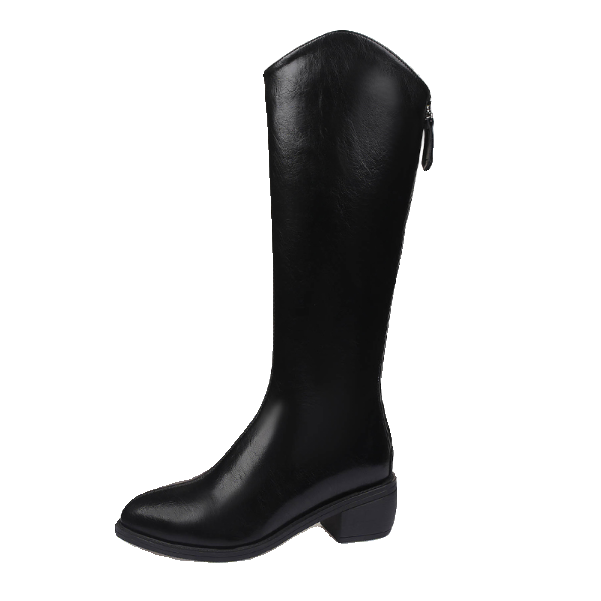 真皮~内增高粗跟骑士靴女秋冬西部靴高筒复古显瘦褶皱堆堆靴长靴