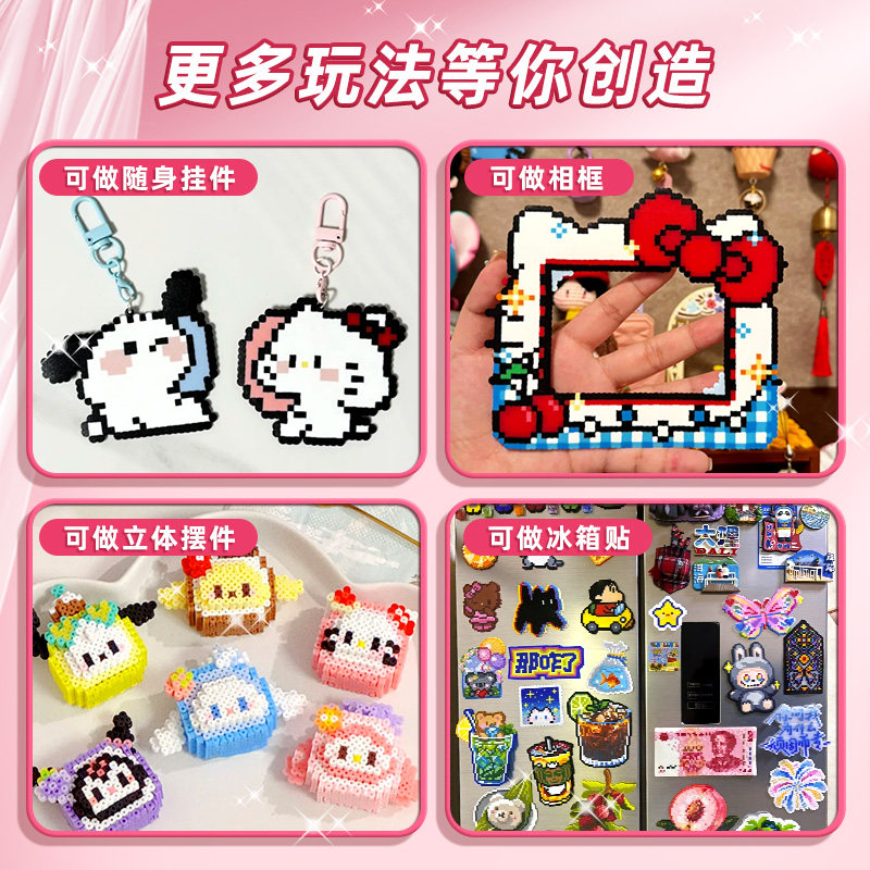2025新款拼豆豆手工diy材料包全套玩具融合coco拼豆补充装全色系套装辅助工具笔铲子女生女孩加熨斗立体拼图