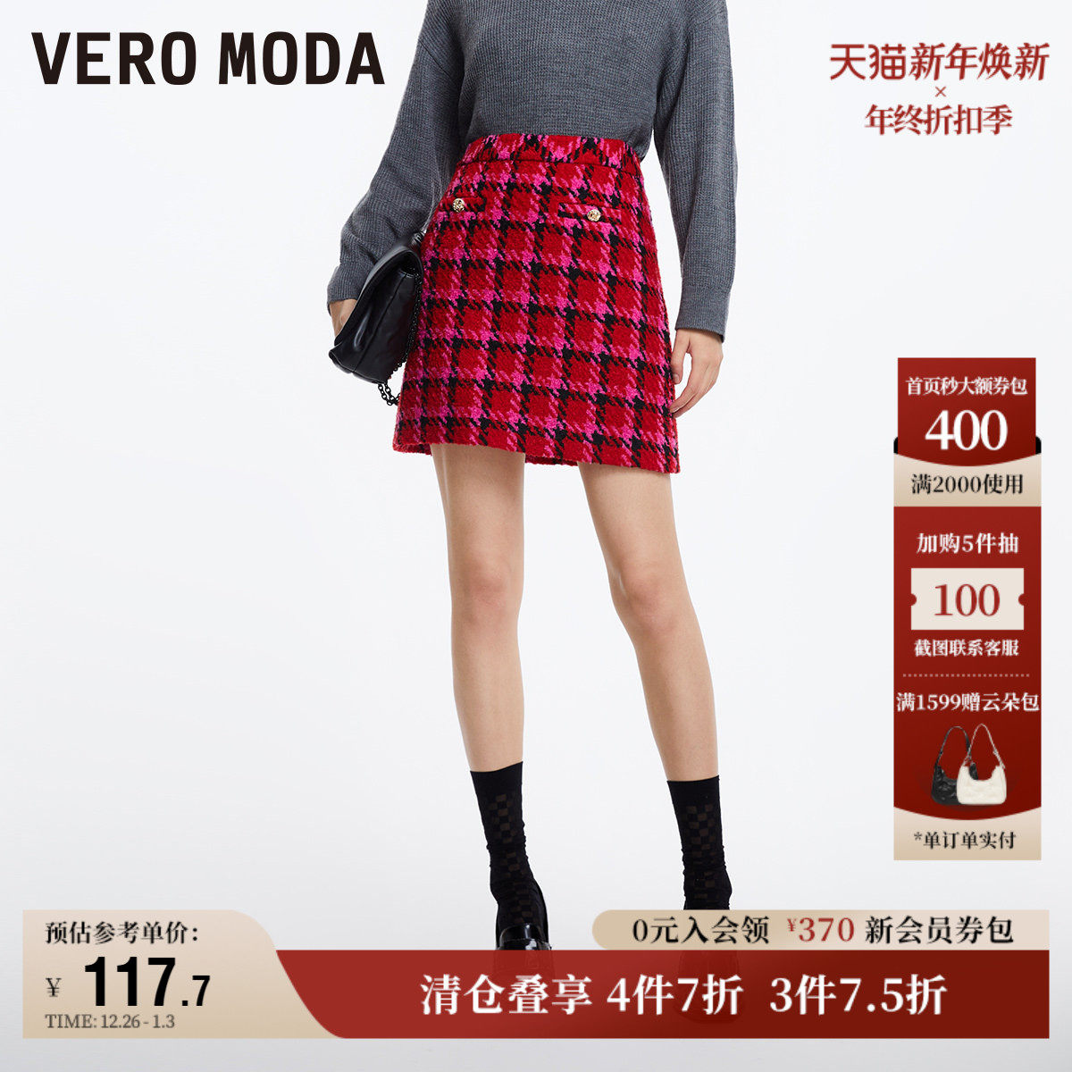 Vero Moda奥莱半身裙秋冬清仓高腰小香风气质优雅复古百搭女流行