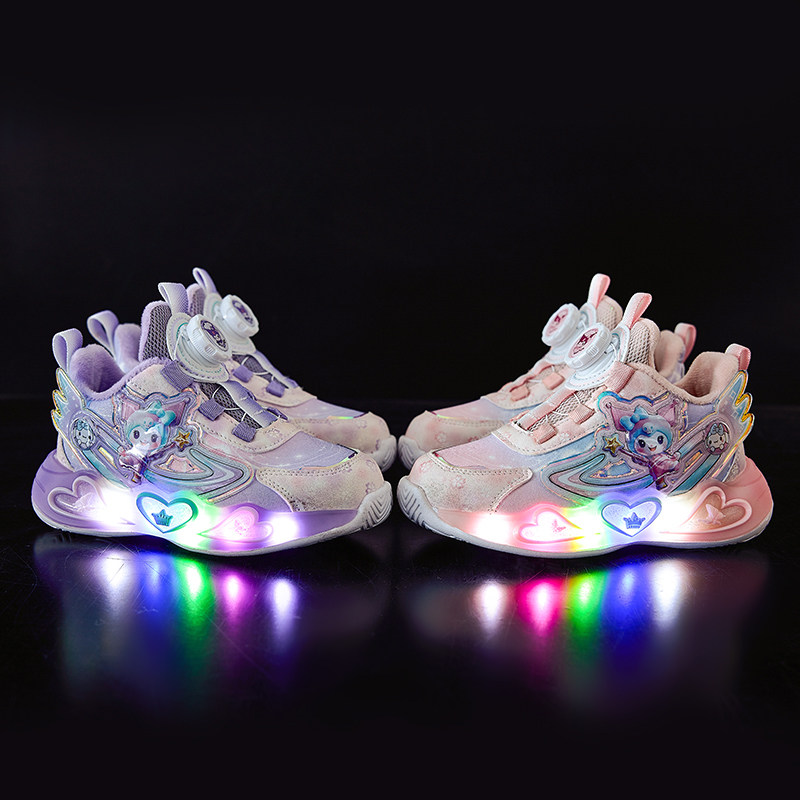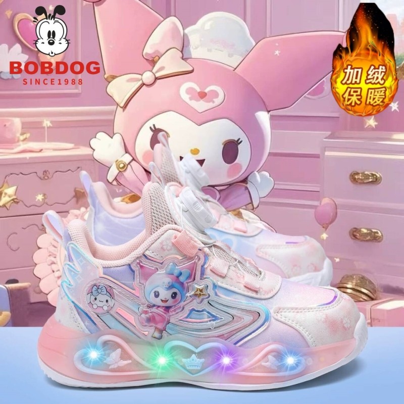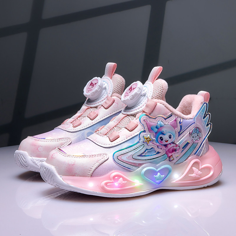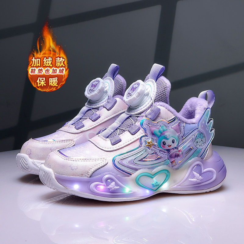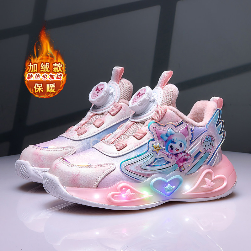 巴布豆真皮小马宝莉女童发光冬季加绒保暖旋转扣鞋轻便运动跑步鞋