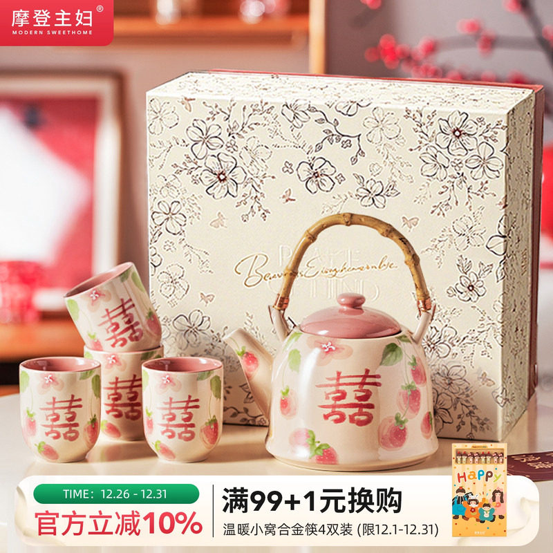 摩登主妇陶瓷泡茶壶茶具套装结婚订婚新婚礼物送闺蜜新娘家用杯子