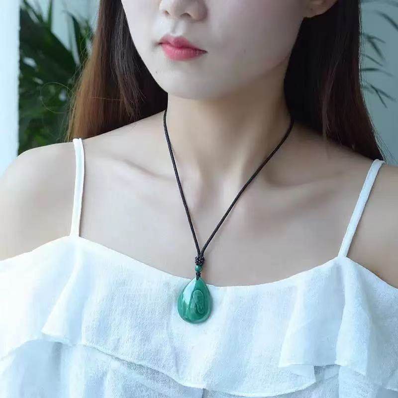 孔雀石水滴形吊坠绿宝石diy饰品水晶项坠挂件平安扣配饰摆件