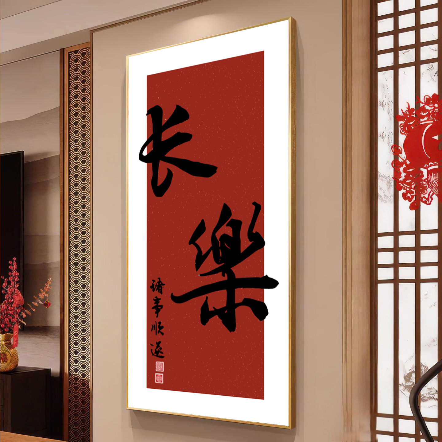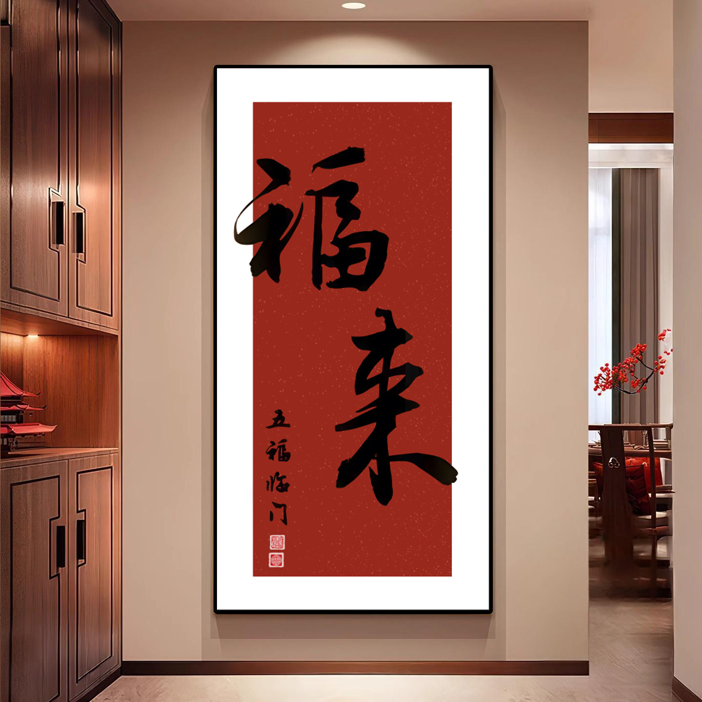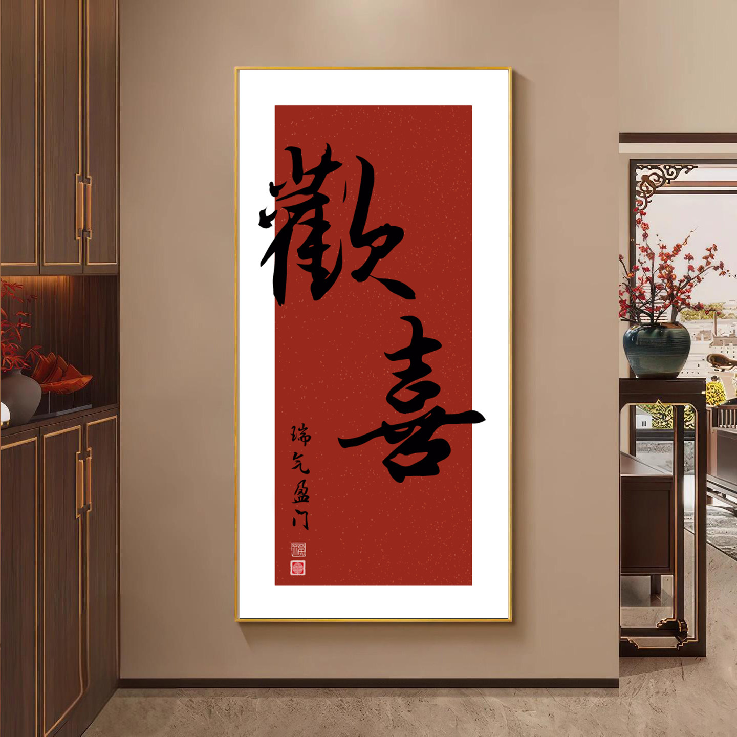 新中式欢喜字画入户装饰画走廊玄关过道正对门现代简约挂画壁画