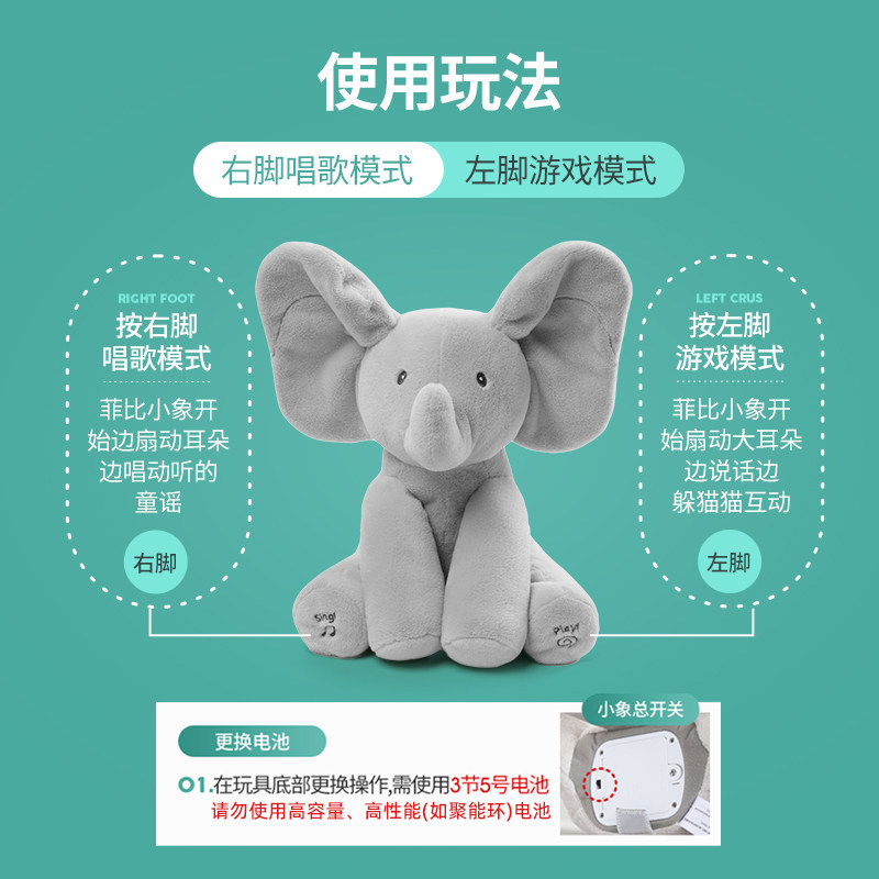 babygund小兔菲比小象躲猫猫大象毛绒玩偶声动安抚玩具新生儿礼物