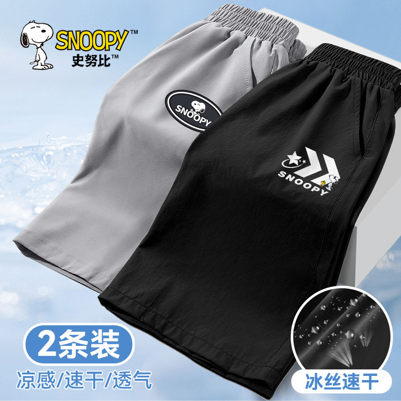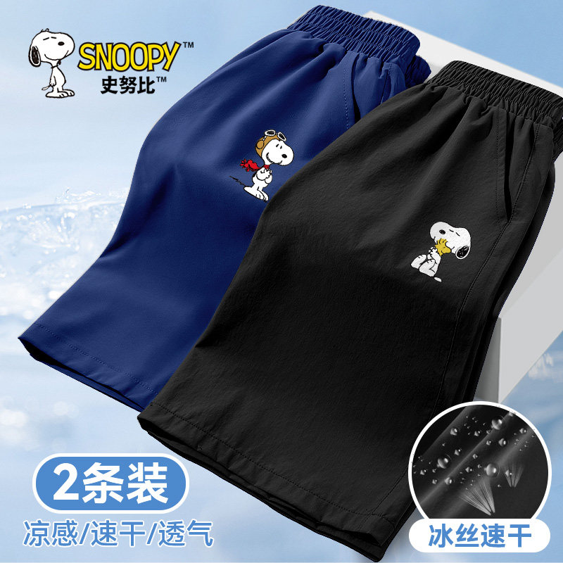 史努比男童短裤2025新款夏季冰丝裤男大童透气中裤儿童速干五分裤