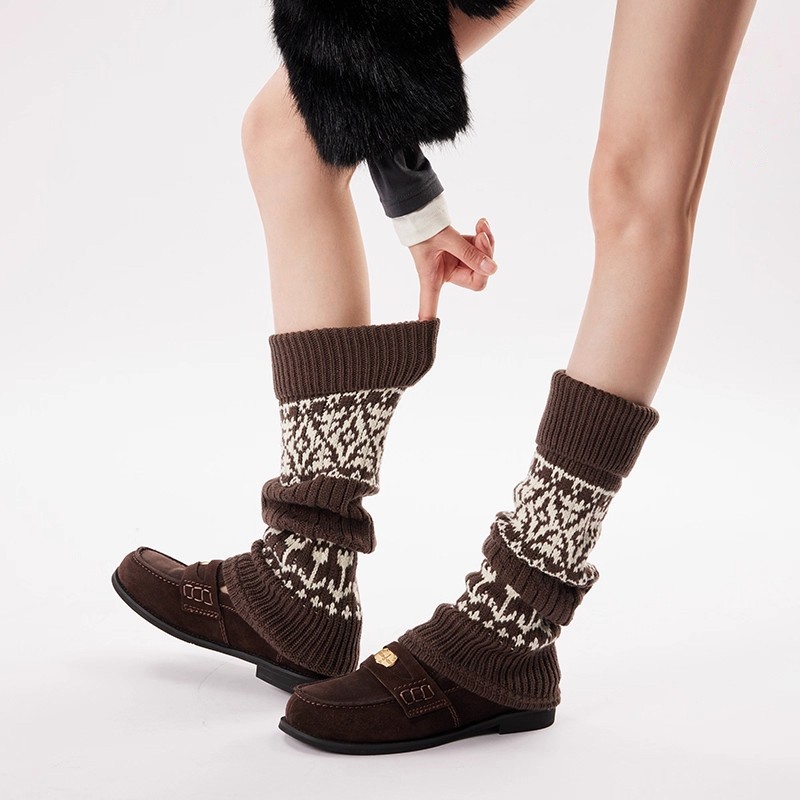 复古费尔岛堆堆袜套秋冬加厚保暖灰色腿套羊毛袜子2025新款爆款冬