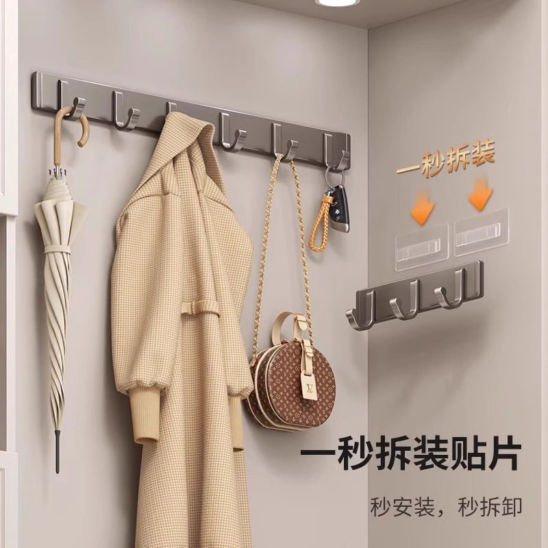 挂衣架衣服挂钩免打孔强力承重壁挂墙壁上门后粘胶卫生间浴室一排