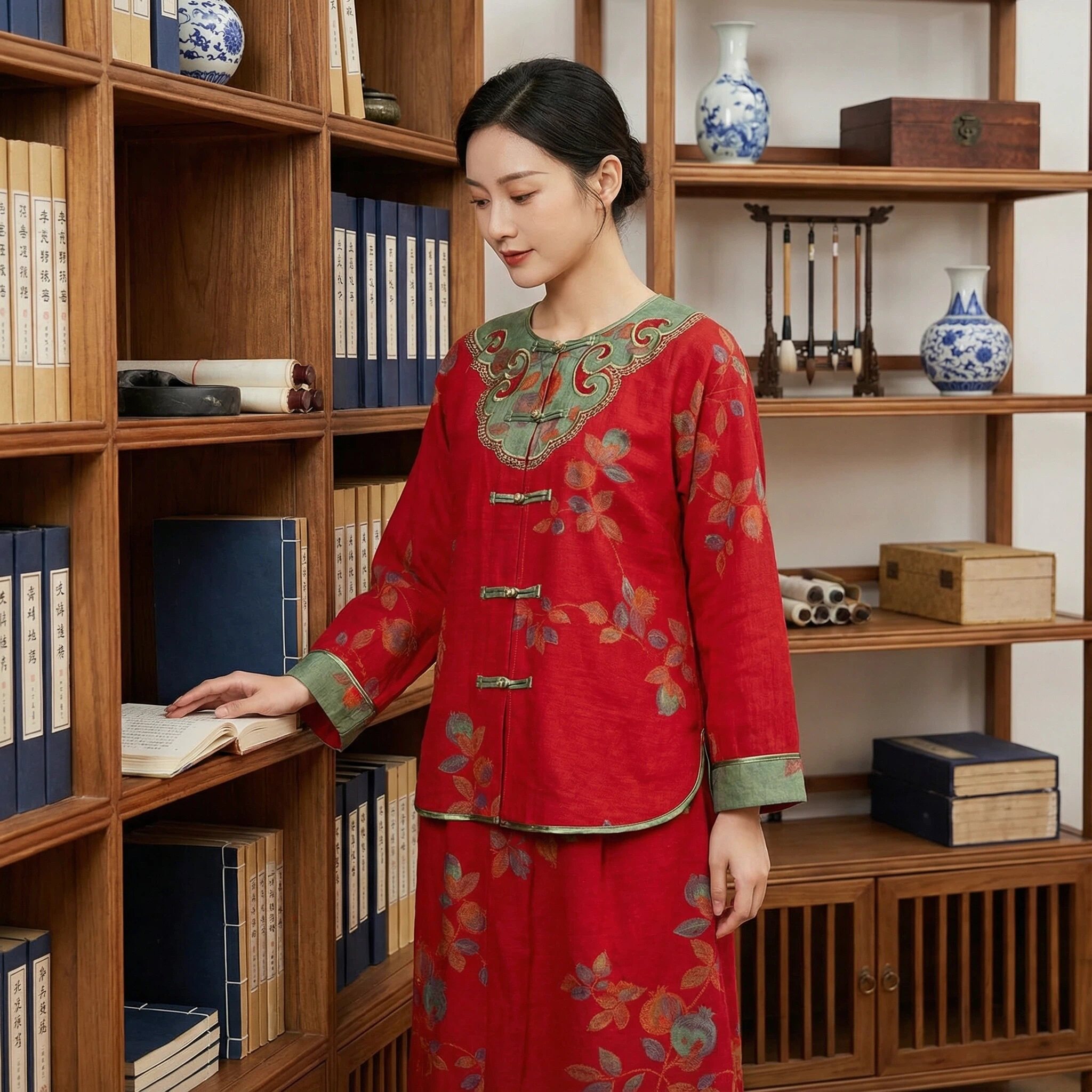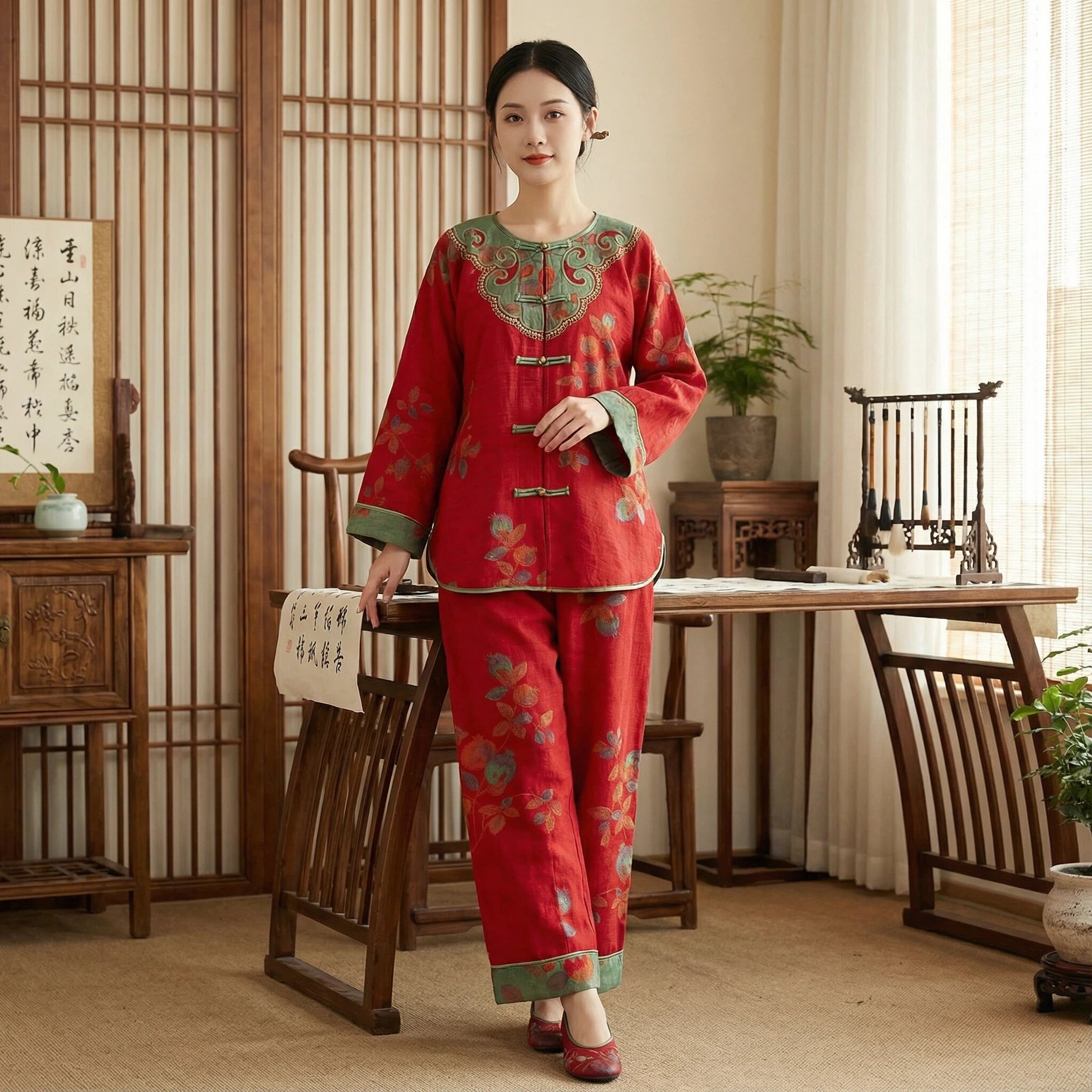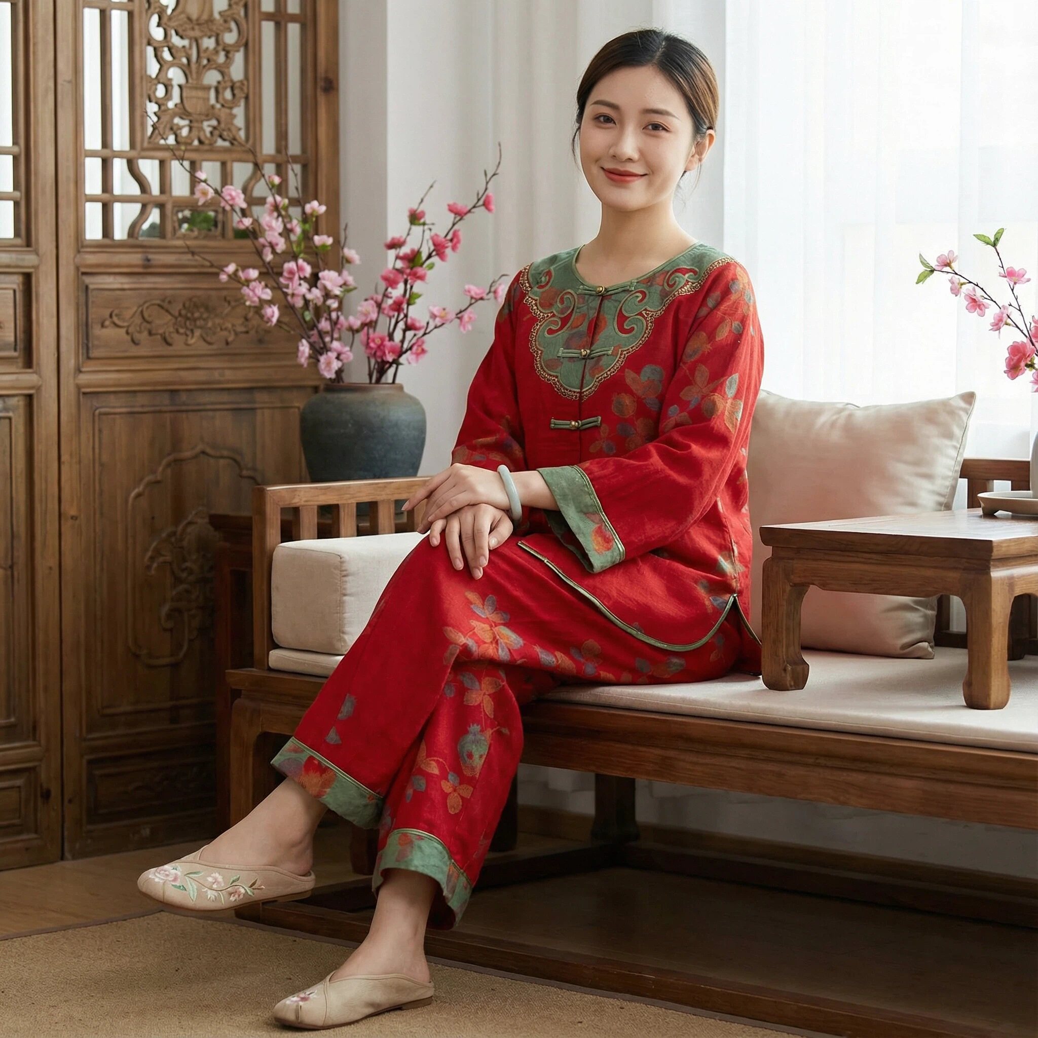 新中式国风色织家居服2025纯棉睡衣套装可外穿四季可穿中年妈妈衣