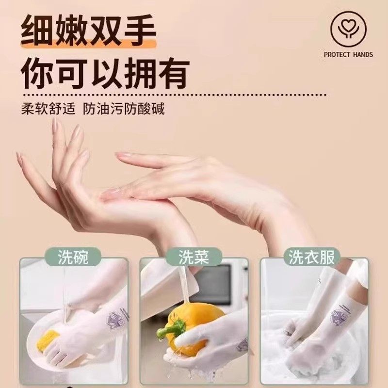 洗碗手套女家用厨房耐用型贴手防水胶皮手套刷碗做家务清洁洗衣服