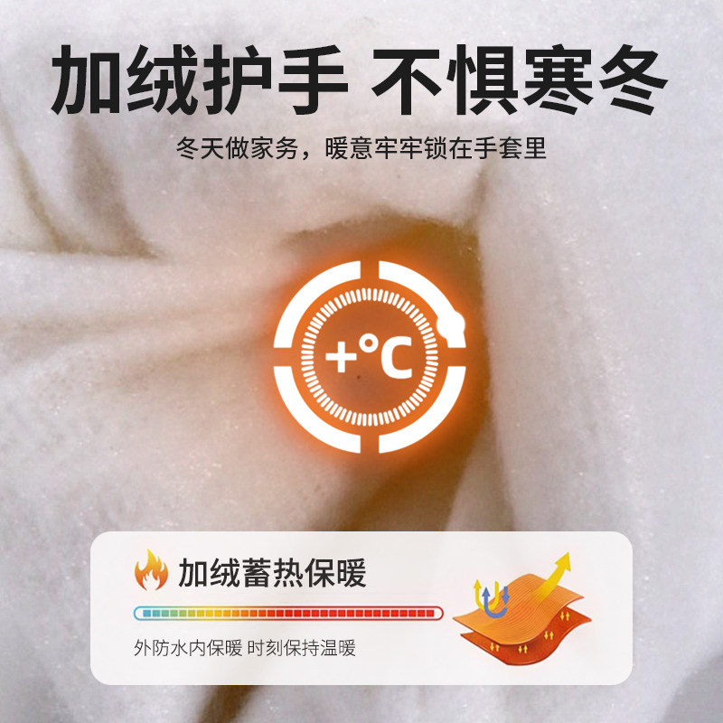 丁腈手套一体绒家务洗碗厨房耐用型加厚加绒洗衣服防水刷锅碗冬天