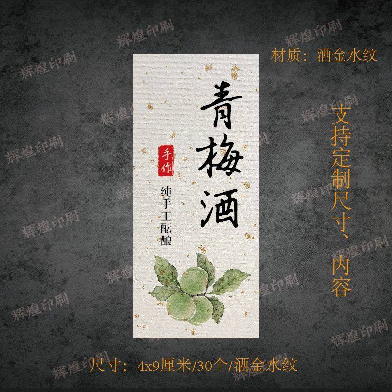 青梅酒杨梅酒葡萄酒不干胶标签贴纸果酒酒瓶标签封口贴可定制h