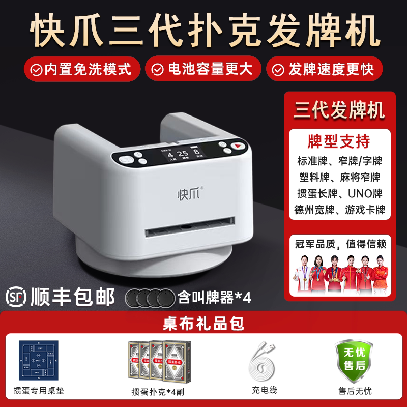 快爪掼蛋发牌机语音智能洗发牌一体机斗地主干瞪眼扑克自动发牌器