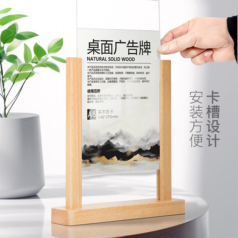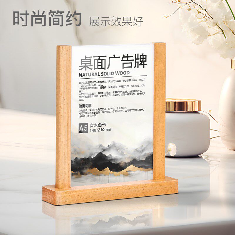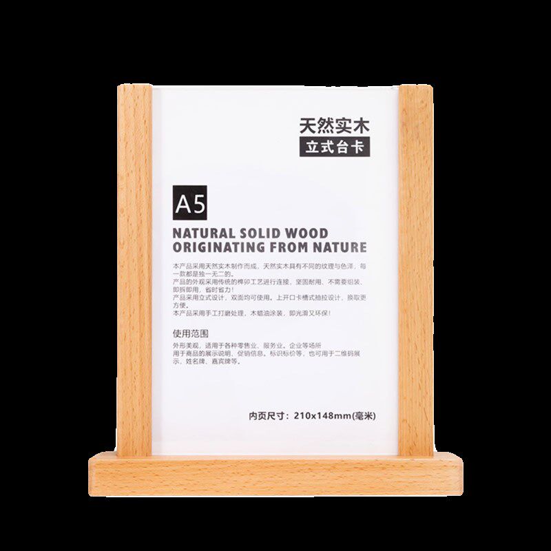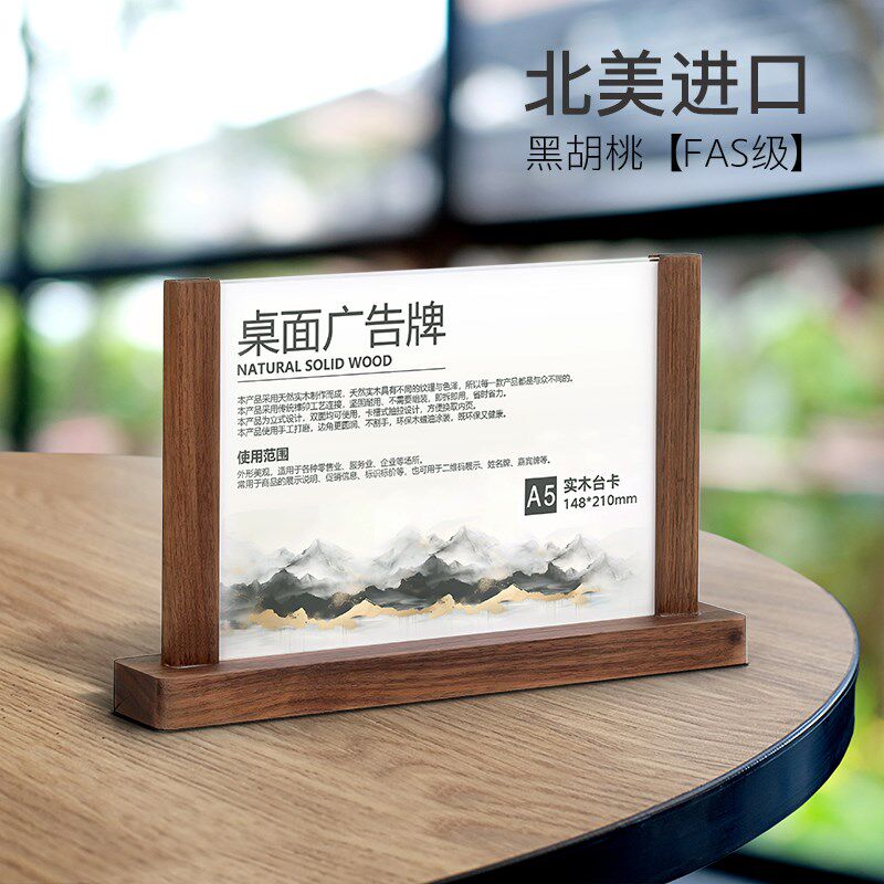 实木桌牌高档餐厅菜单价目牌亚克力台卡A5A6立牌餐桌双面广告牌子