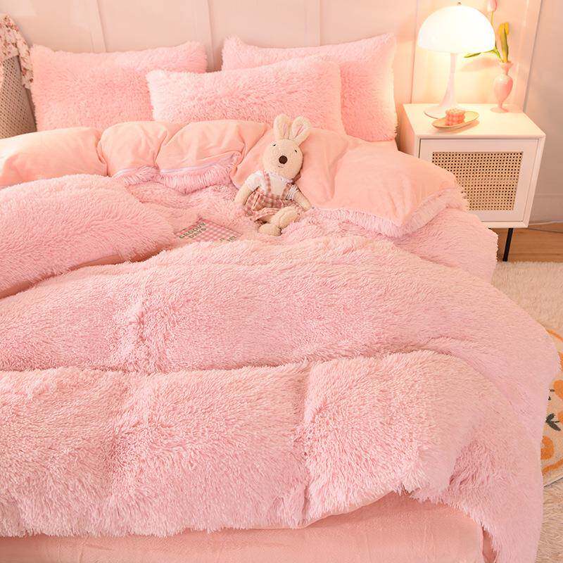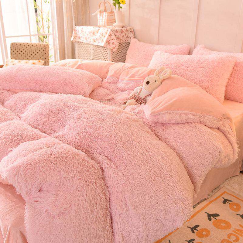 简约纯色加厚水貂绒水晶绒四件套 保暖被套床单单双人四件套