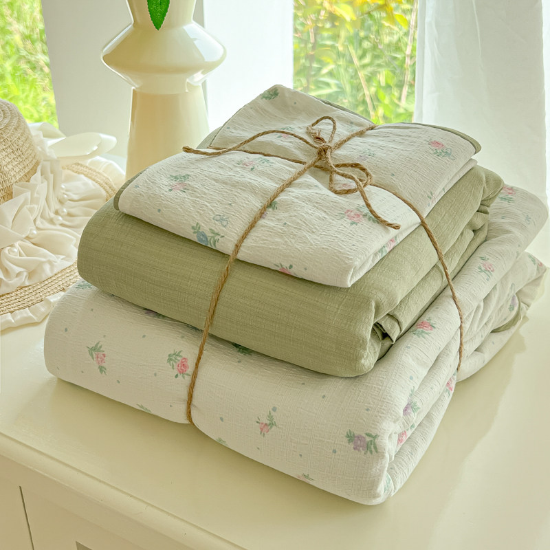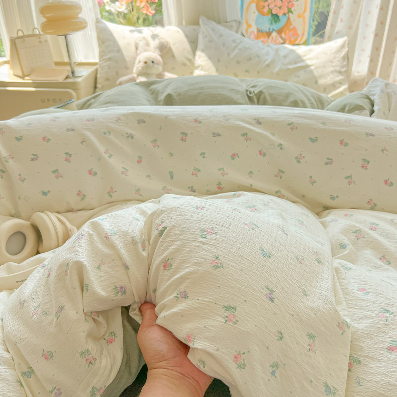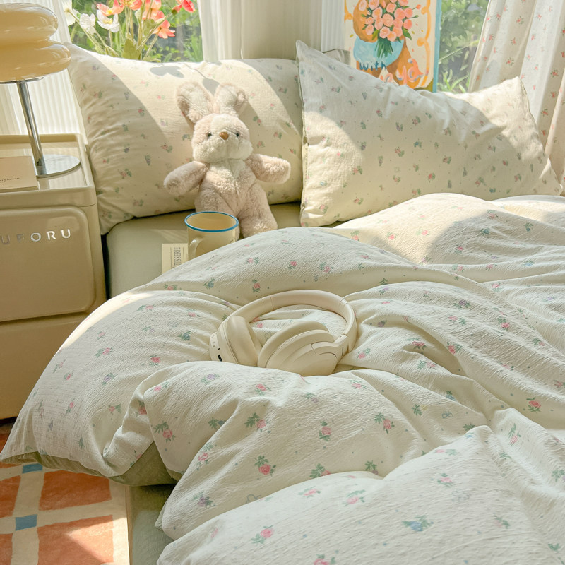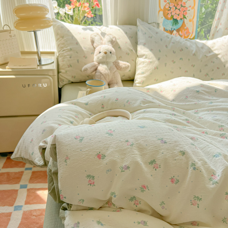 A类双层纱床上四件套纯棉全棉新款田园床单件被套被罩宿舍三件套4
