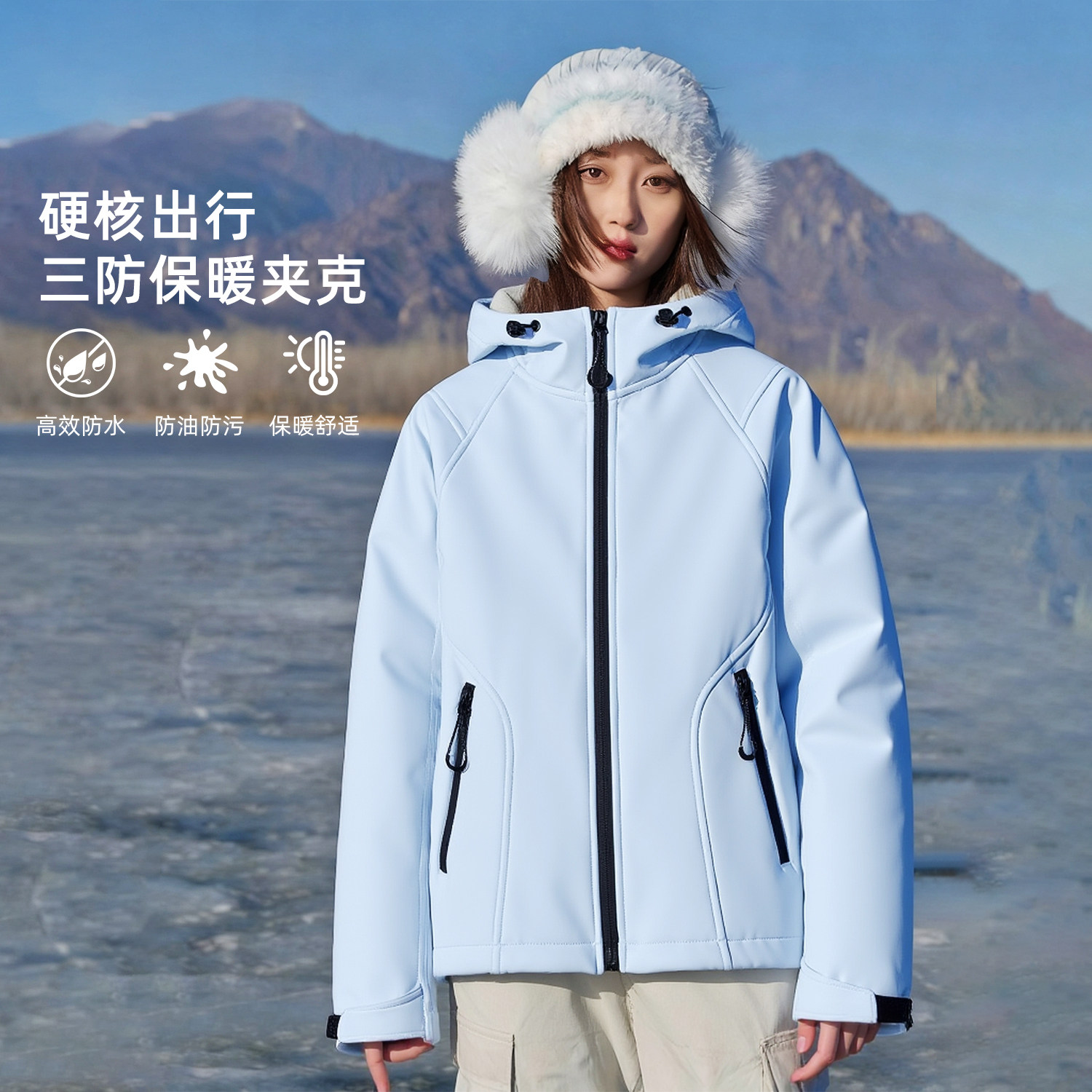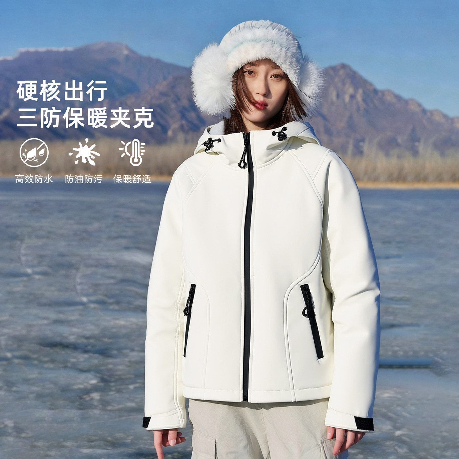 KHV真维斯紫色软壳加绒外套女秋冬季2025新款户外登山服夹克上衣