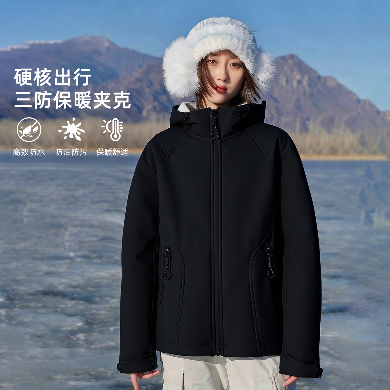 蕉下软壳万粒绒外套女秋冬新款双面穿摇粒绒抓绒内胆防风加绒外套