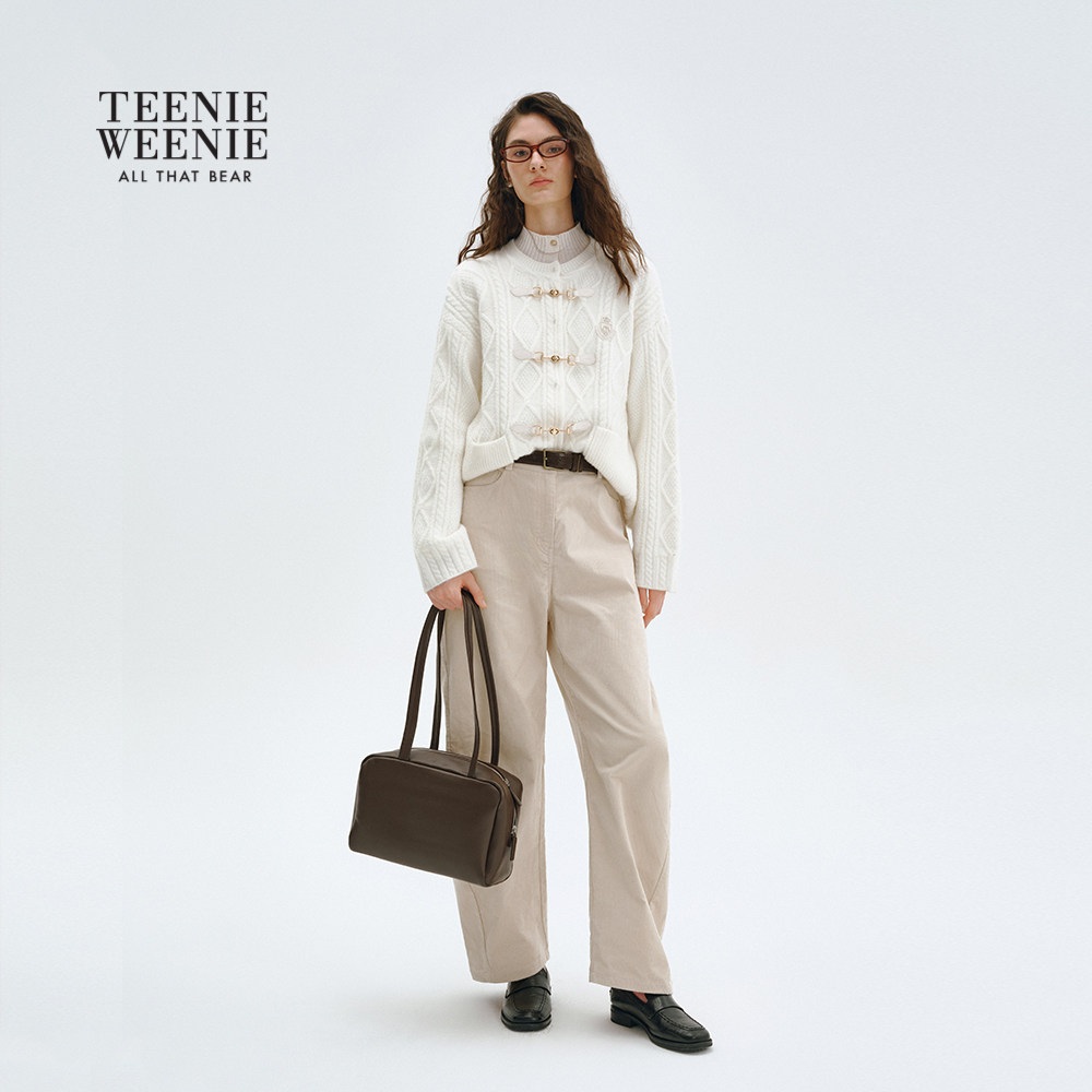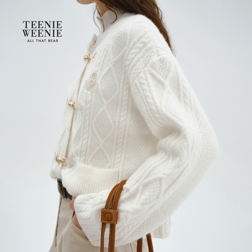 TeenieWeenie小熊女装毛针织衫2025冬新款复古优雅温暖圆领开衫