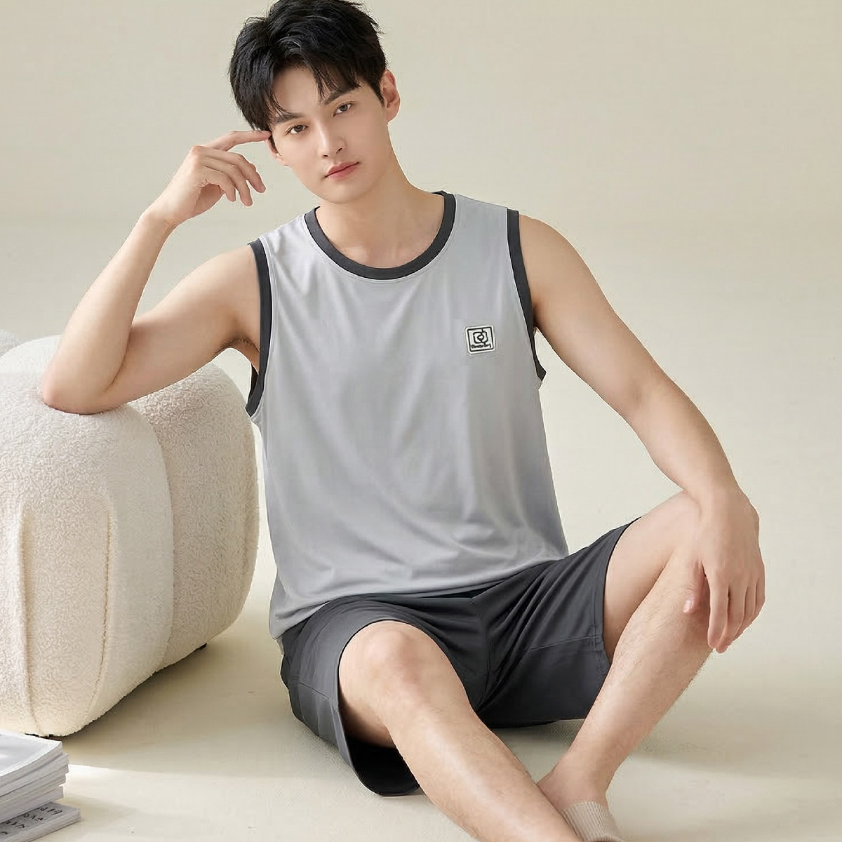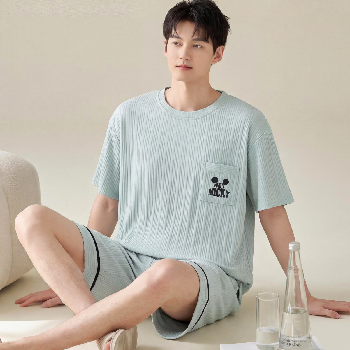猫人水光丝睡衣男女款2026新款夏季情侣冰丝可外穿家居服凉感透气