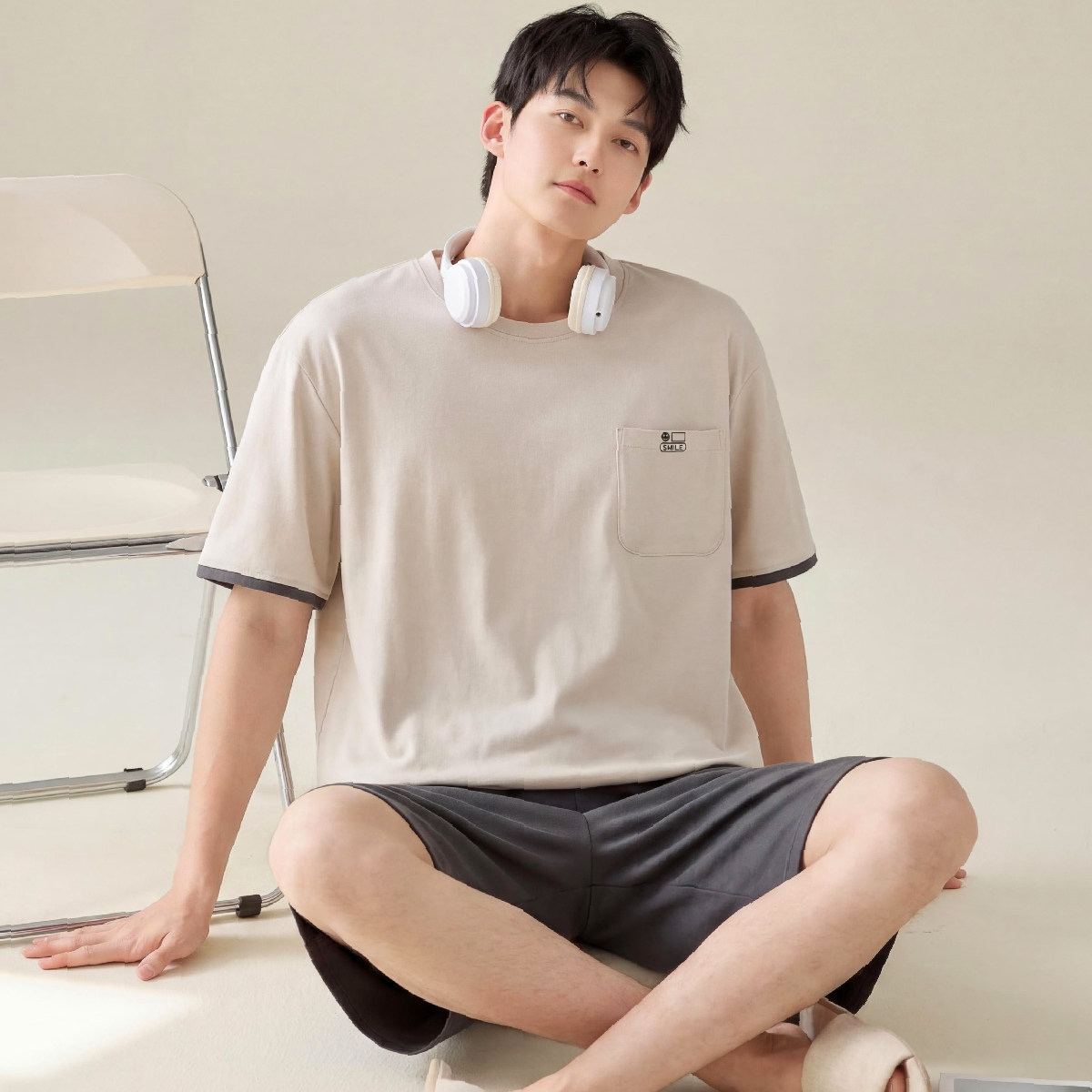 睡衣男夏季棉质短袖短裤青年学生家居服宽松大码薄款中年男士套装