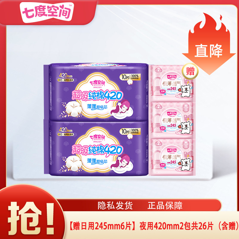 【39.9元任选10包】七度空间日夜用卫生巾正品官方旗舰店