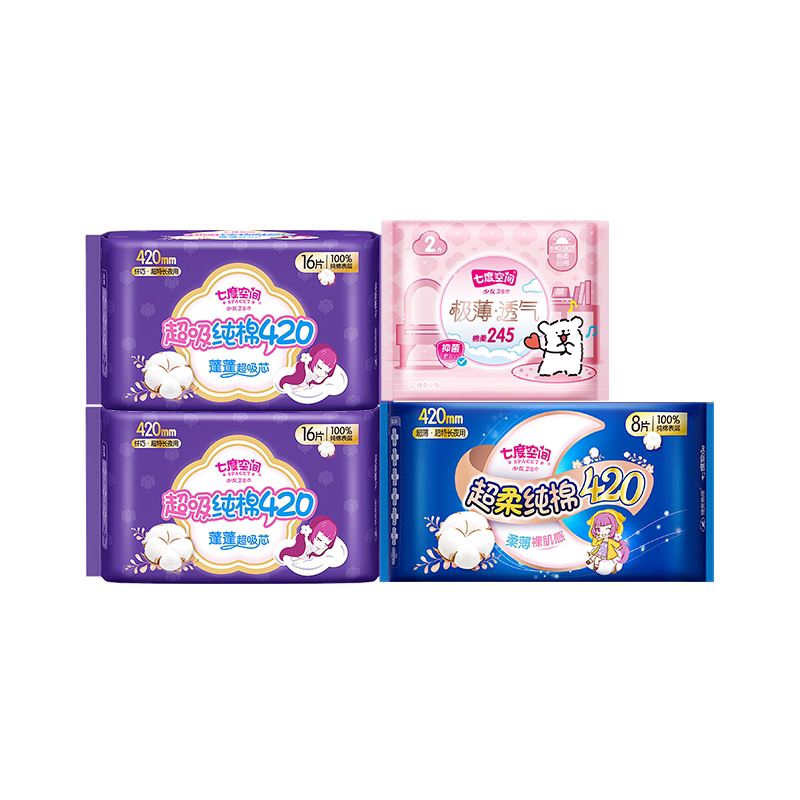 七度空间卫生巾超薄日夜组合姨妈巾量大夜用正品日用纯棉极薄亲肤