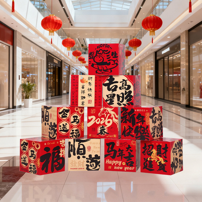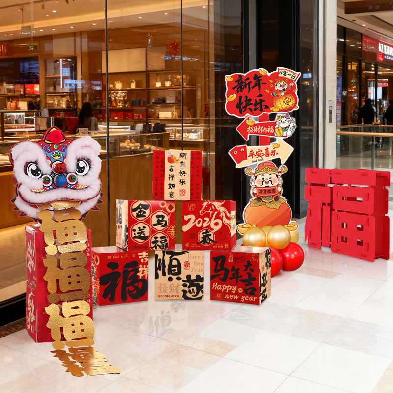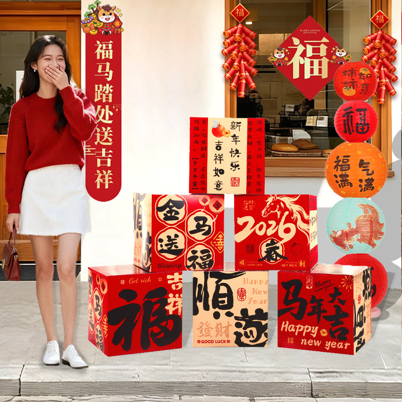 2026马年新年装饰春节堆头盒子路引灯笼商场布置活动场景氛围摆件