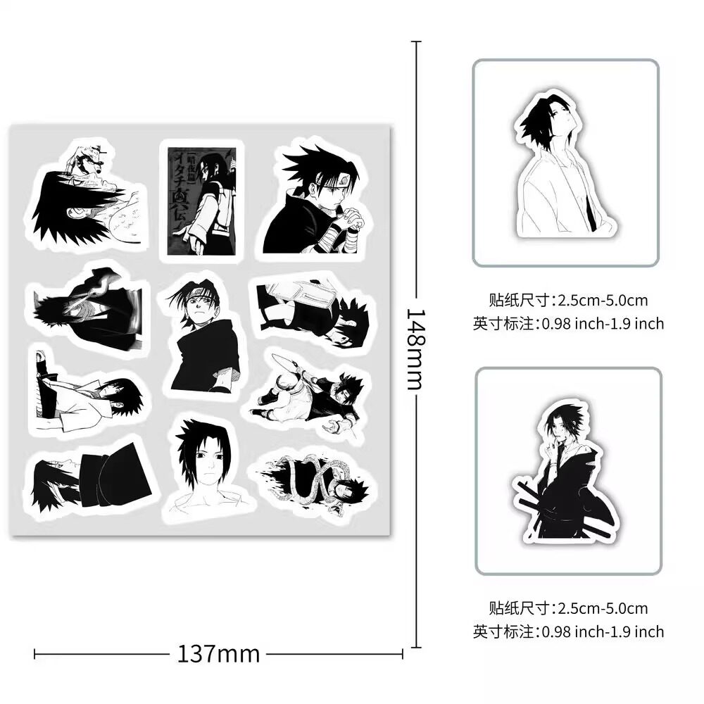 黑白佐助海贼王贴纸火影忍者动漫周边装饰手账手机壳笔记本防水贴