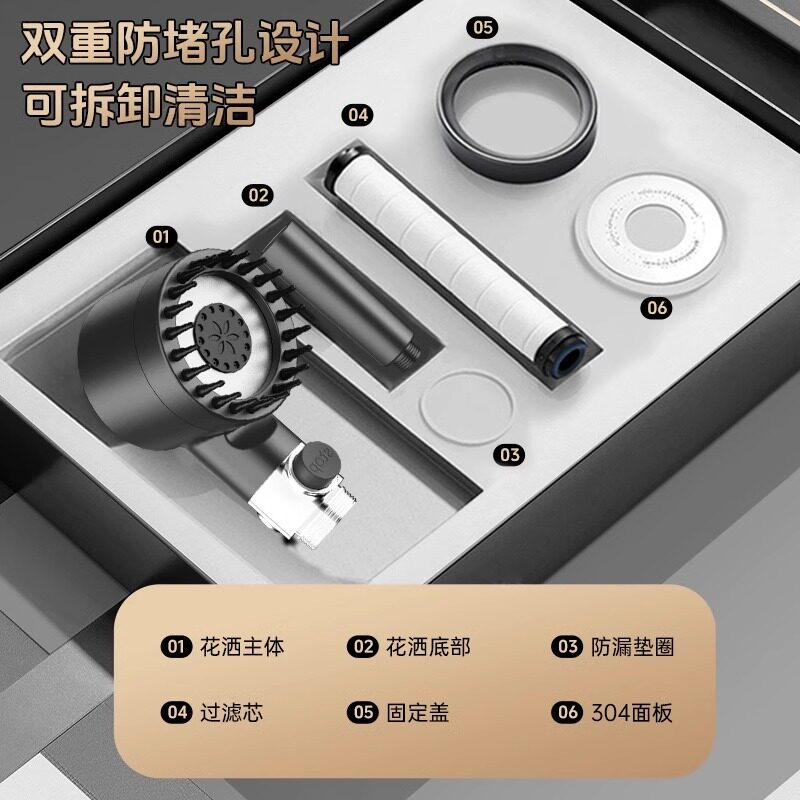 增压淋浴花洒喷头家用浴室洗澡加压可拆洗可拆卸防堵浴霸沐浴套装