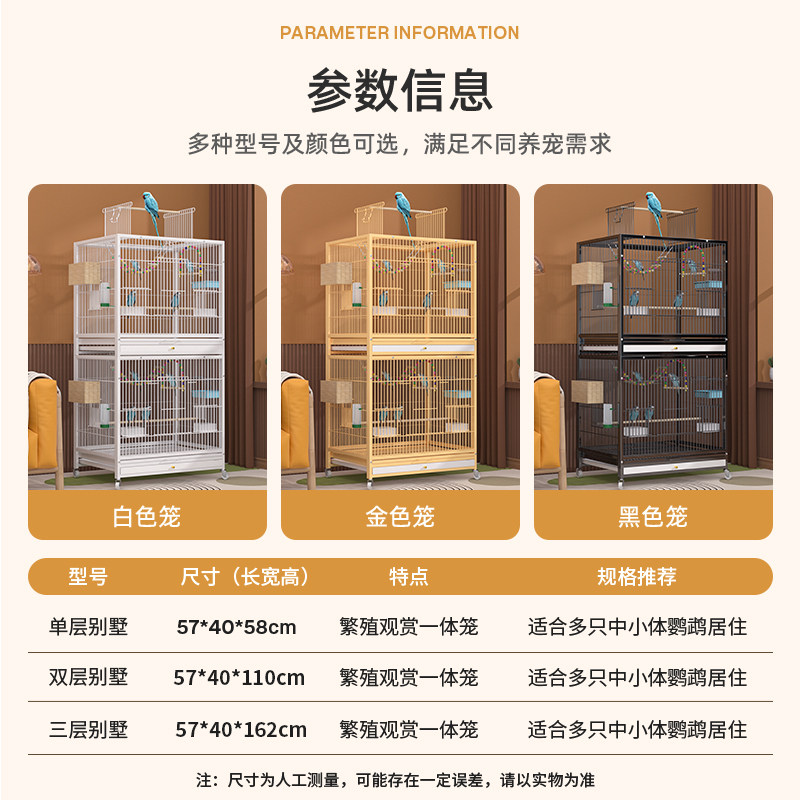 新款鸟笼鹦鹉笼特大号大空间鸟笼子家用三层别墅八哥玄凤专用笼子
