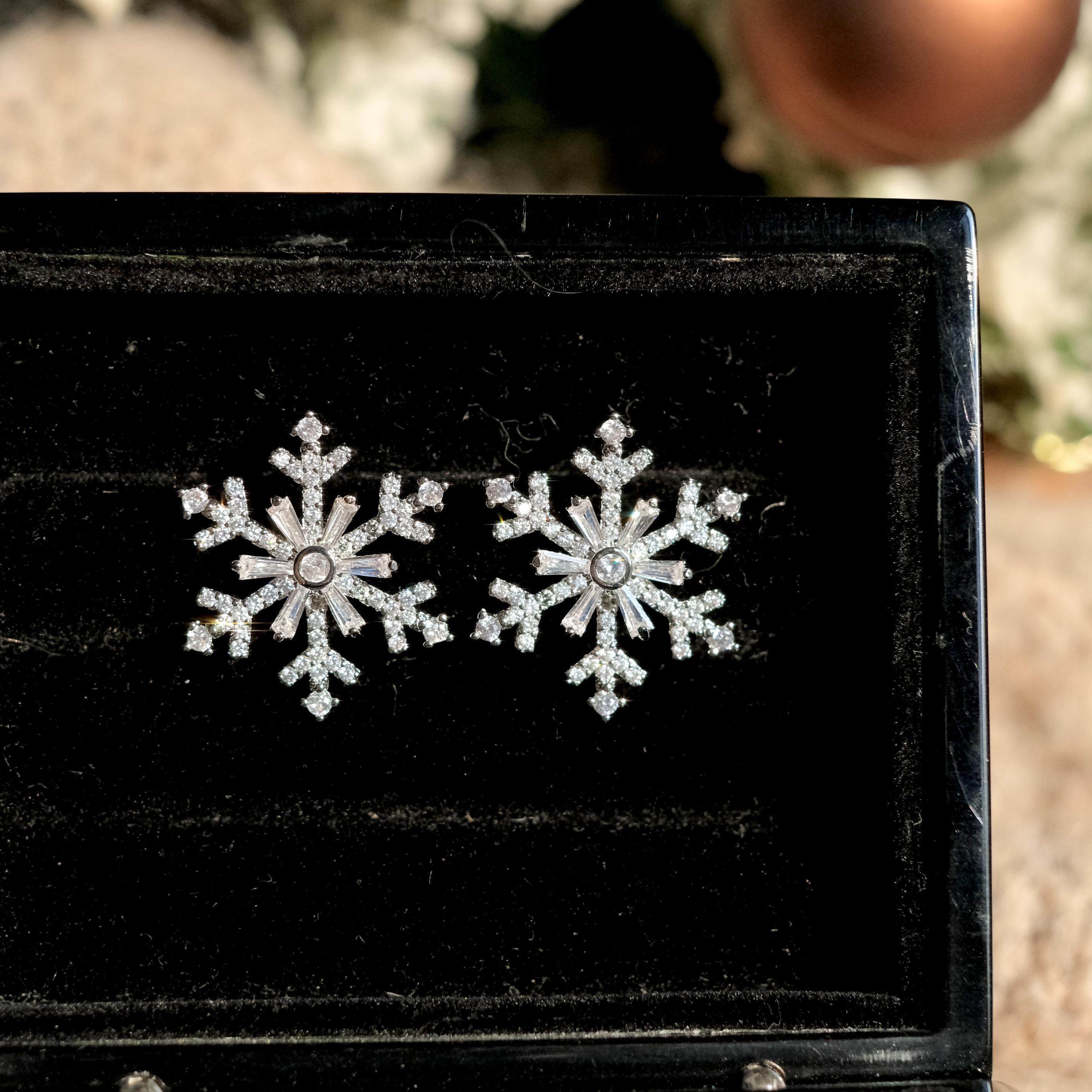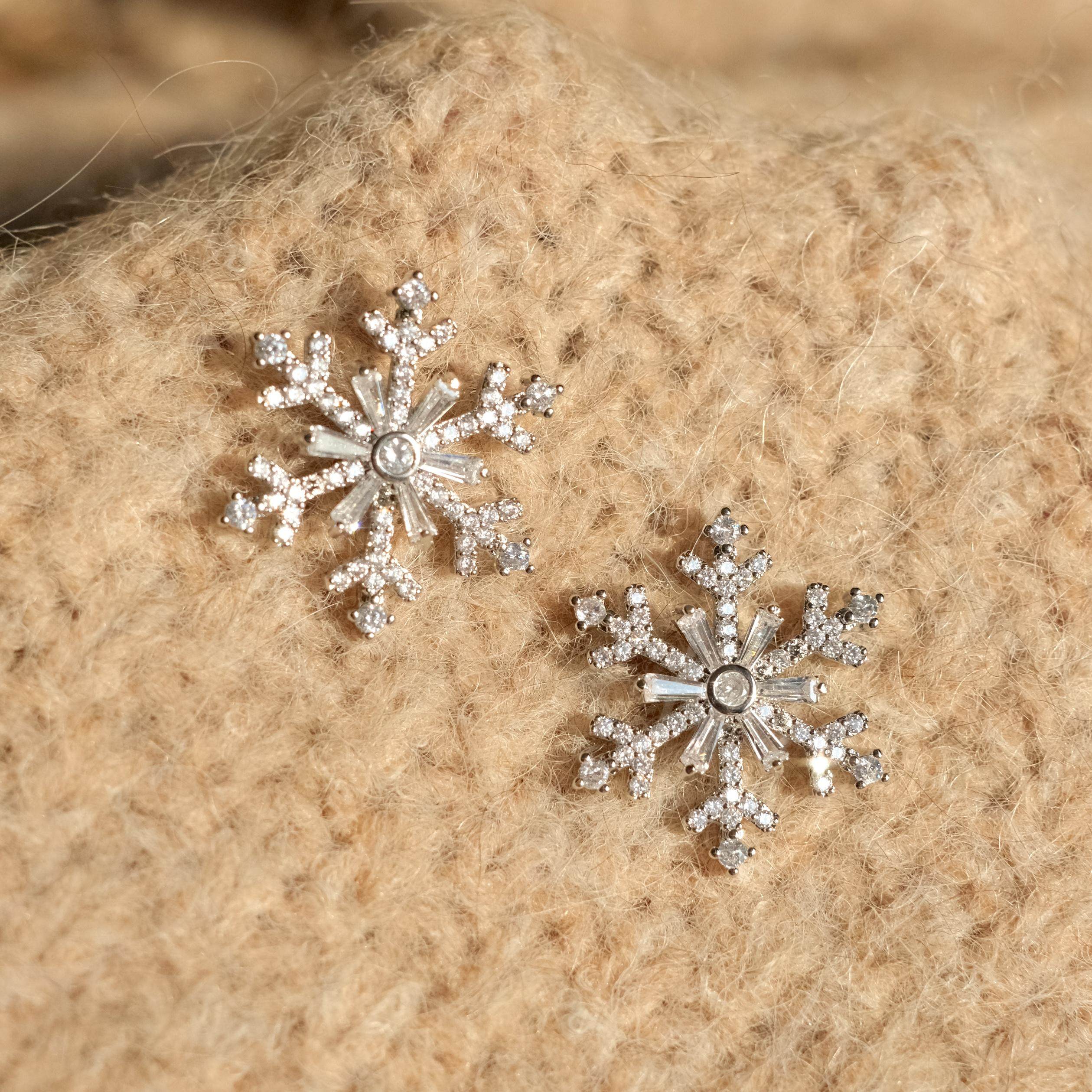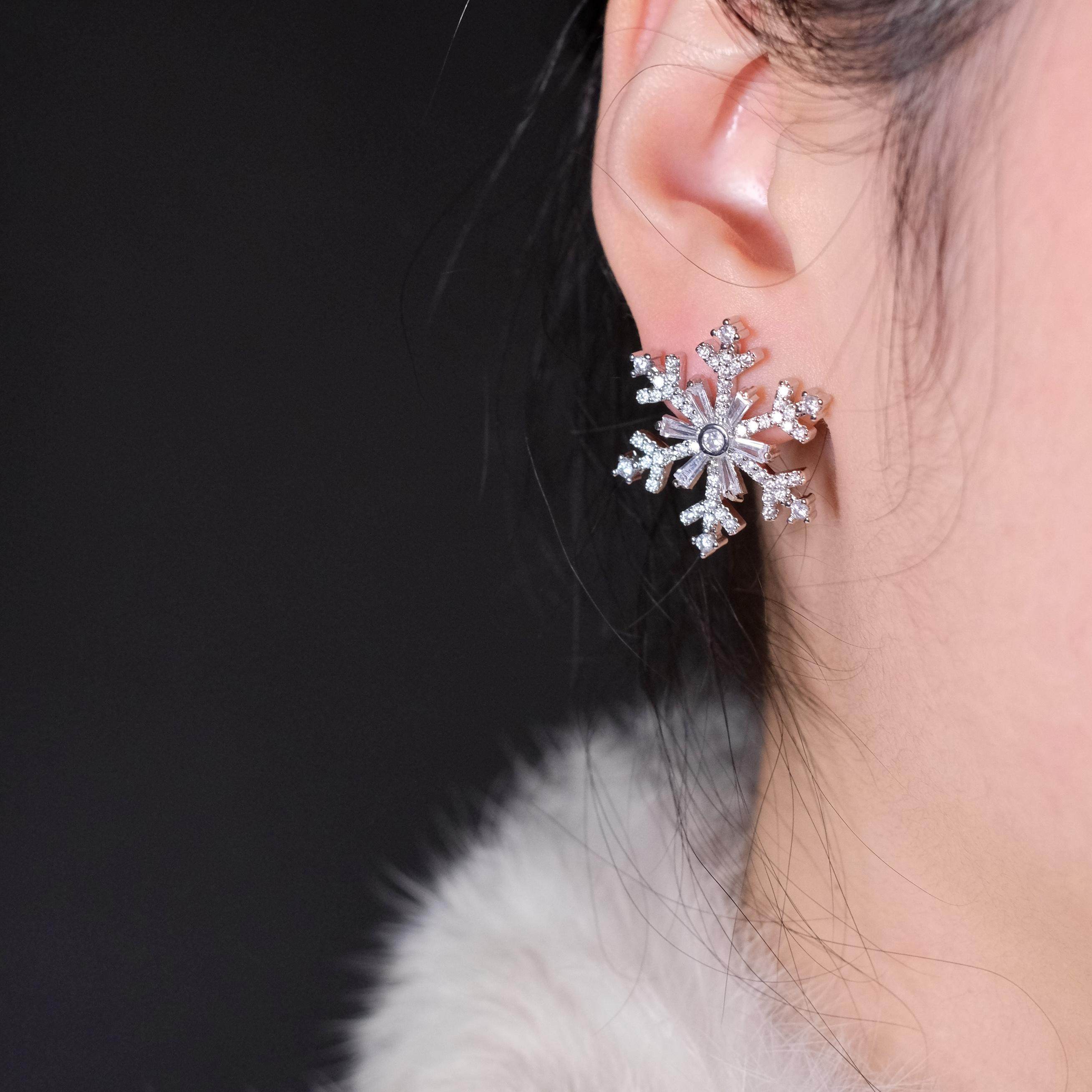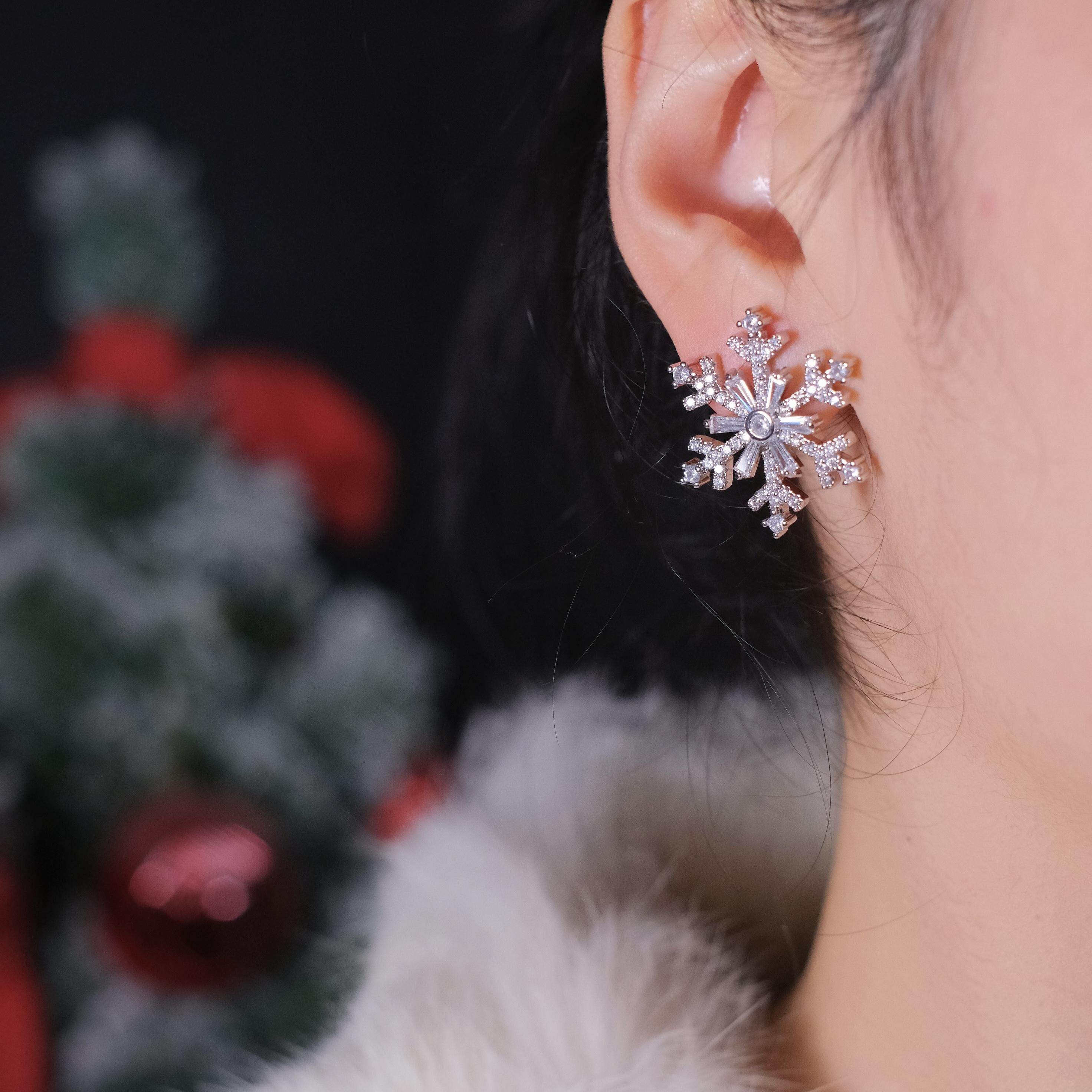 《雪国来信》秋冬满钻雪花圣诞微镶超闪锆石s925纯银耳钉耳环耳夹