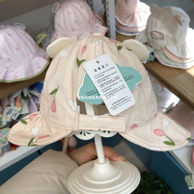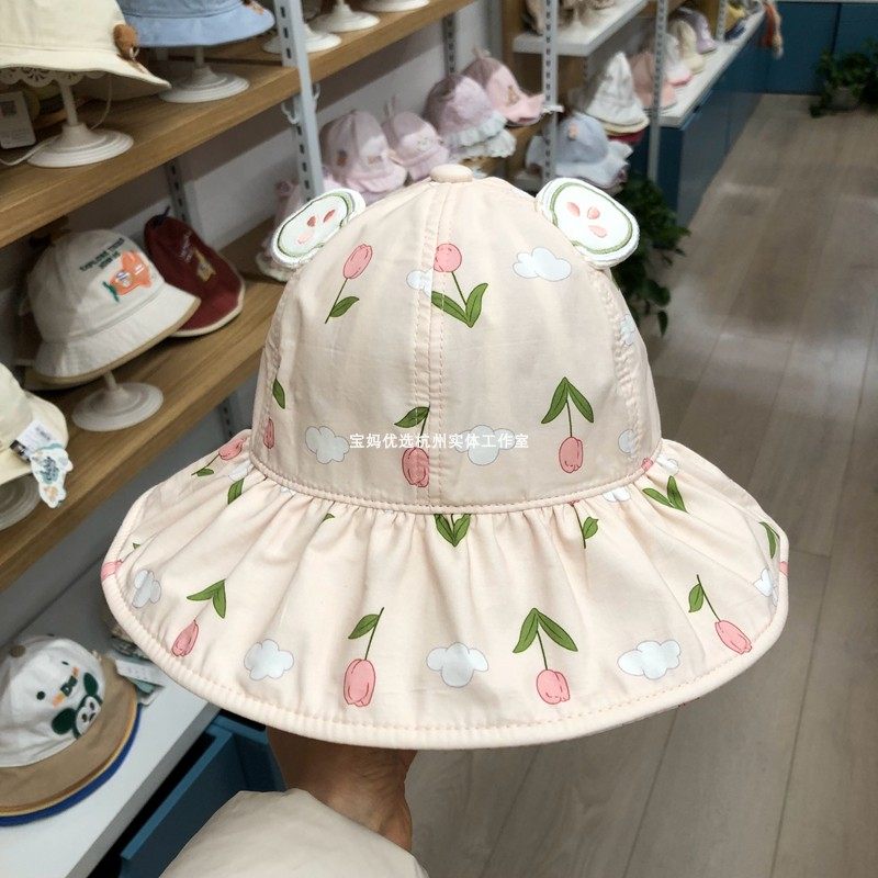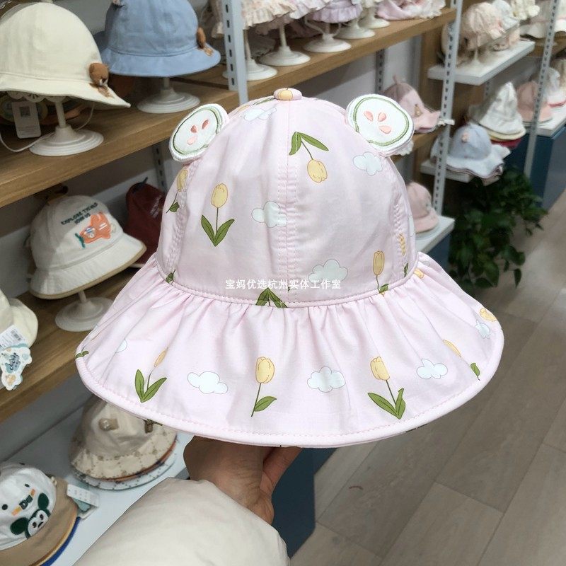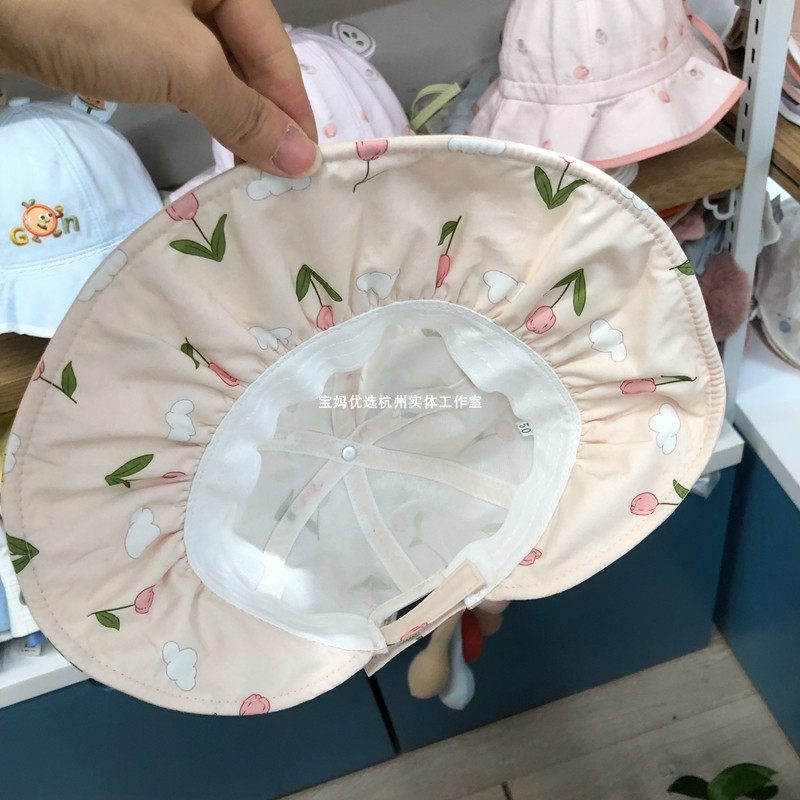 韩版大帽檐婴儿渔夫帽女宝宝花朵公主帽出游防晒遮阳帽可调节帽子