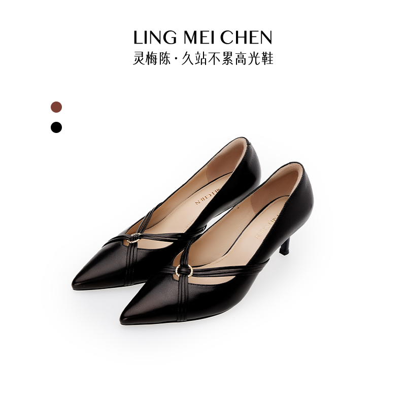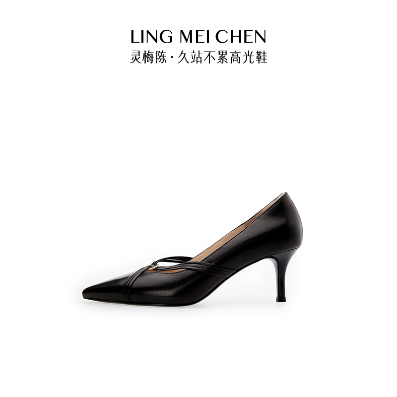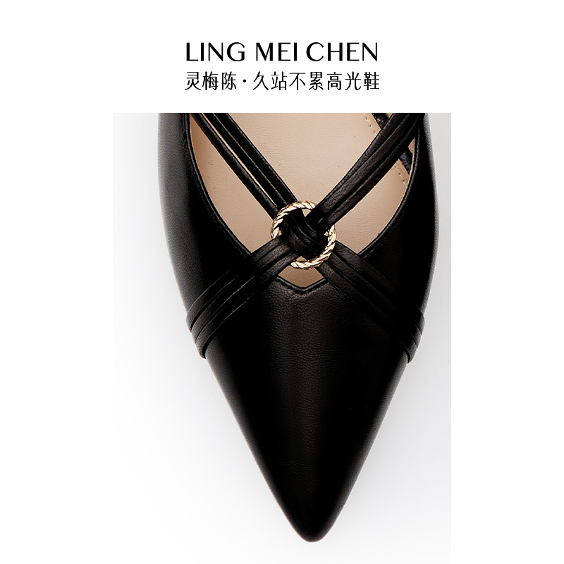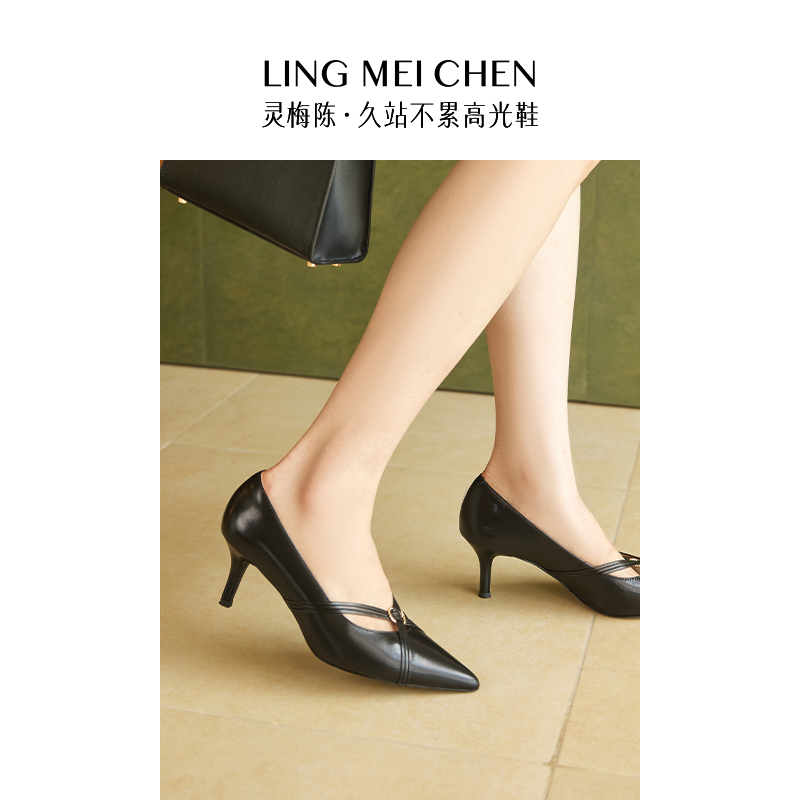 LINGMEICHEN陈数同款高跟鞋皮鞋女款真皮细跟单鞋羊皮尖头旗袍鞋
