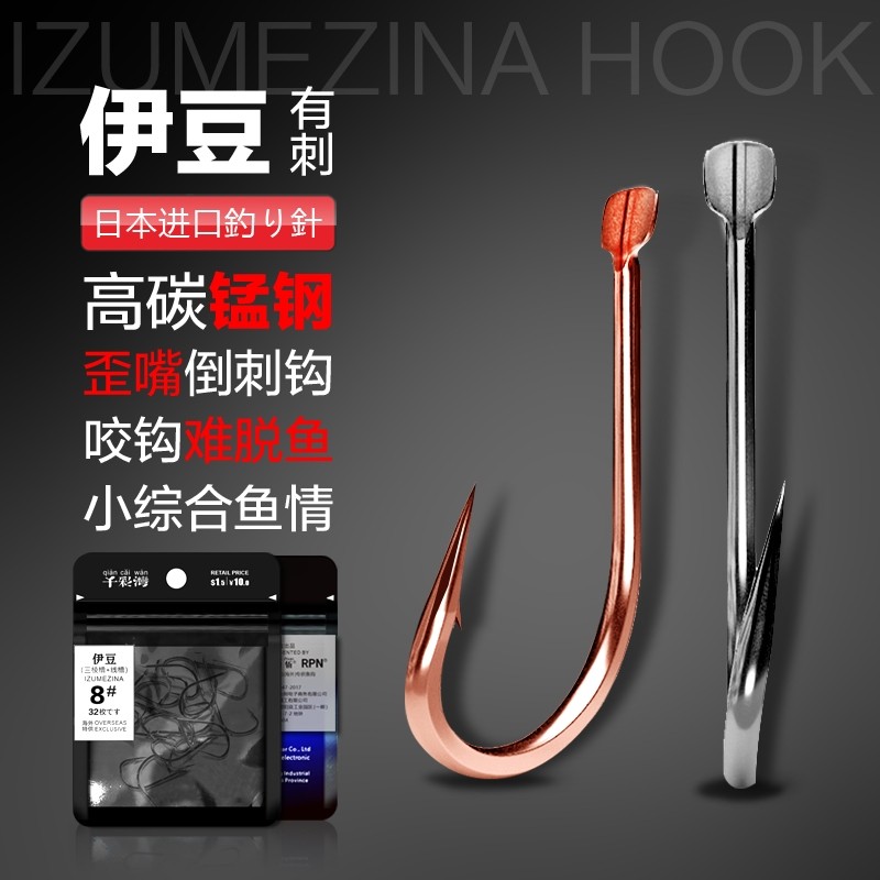日本进口伊豆鱼钩正品歪嘴有倒刺散装鱼钩钓鱼专用鲤鱼鲫鱼野钓钩