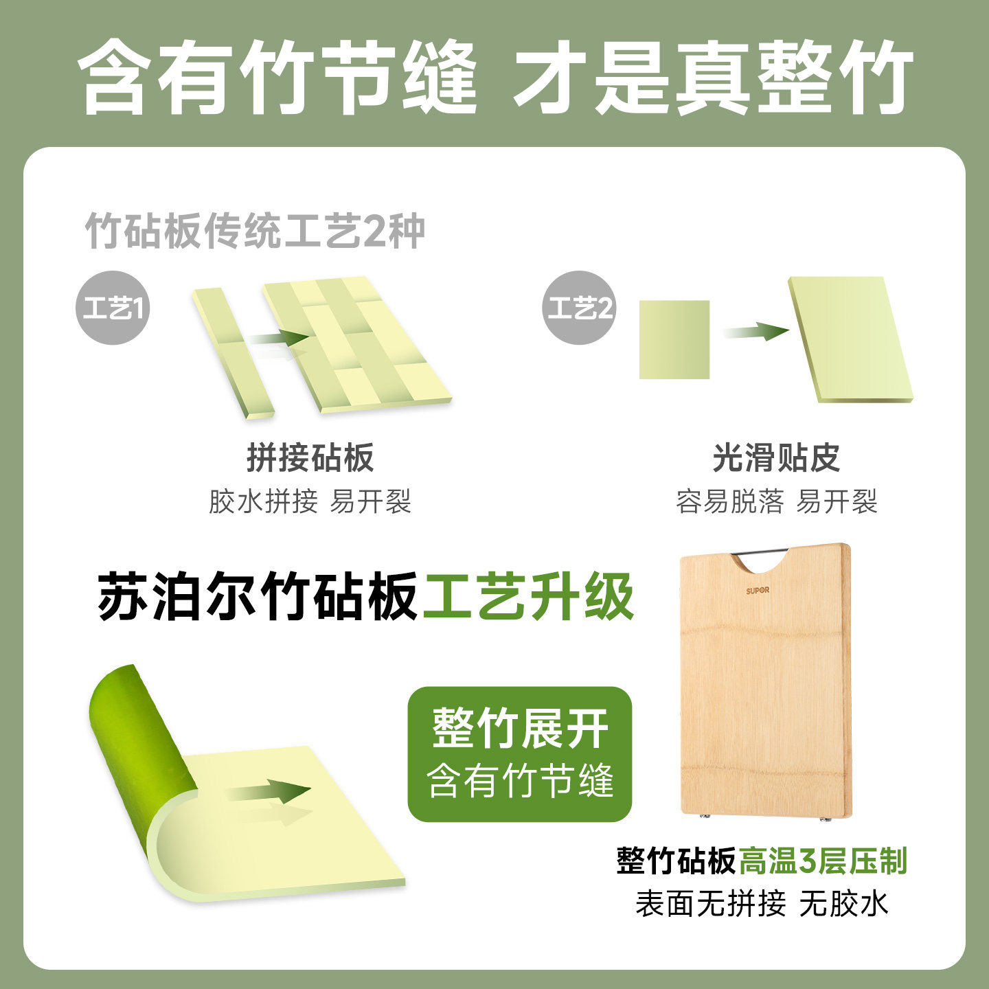 苏泊尔竹菜板抗菌防霉家用实木切菜板整竹案板水果砧板双用小面板