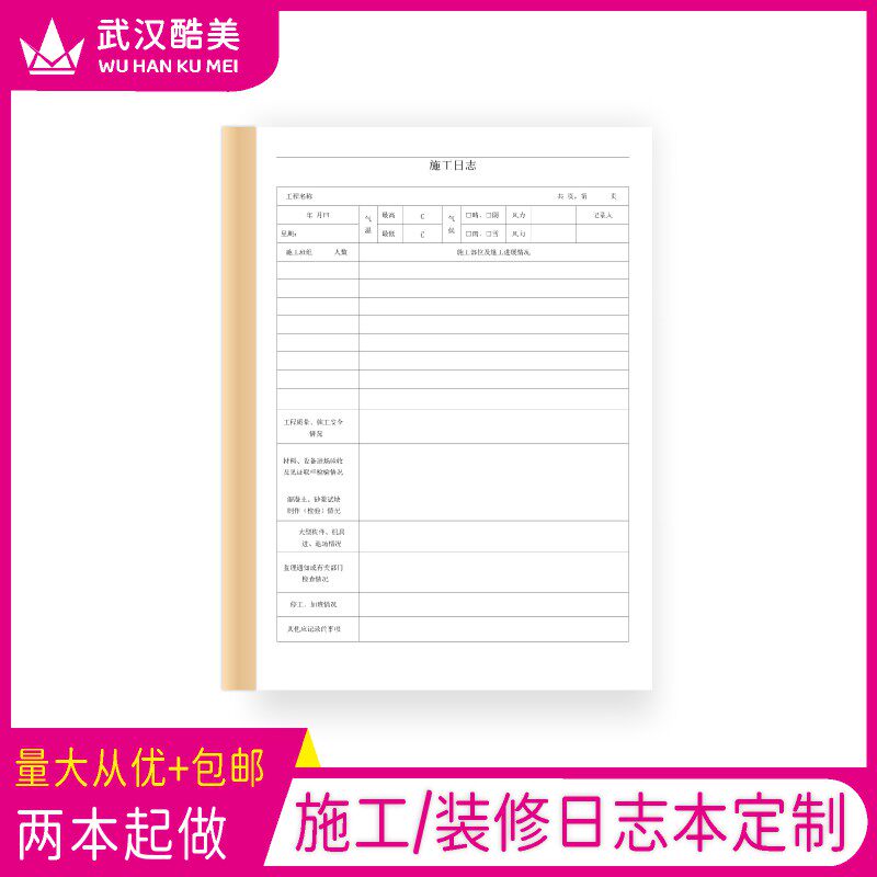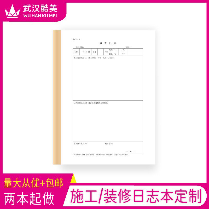 施工日志记录本a4建筑单位监理日记加厚单双面房屋装修工作簿定制