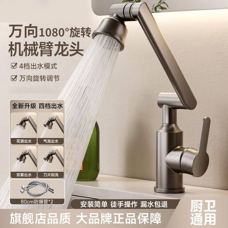 新款万向旋转水龙头洗手盆厨房卫生间冷热水面盆龙头家用洗脸池