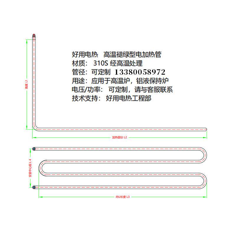 铝液电热管铝水高温加热管熔铝保持炉发热管不锈钢电热棒电加热器