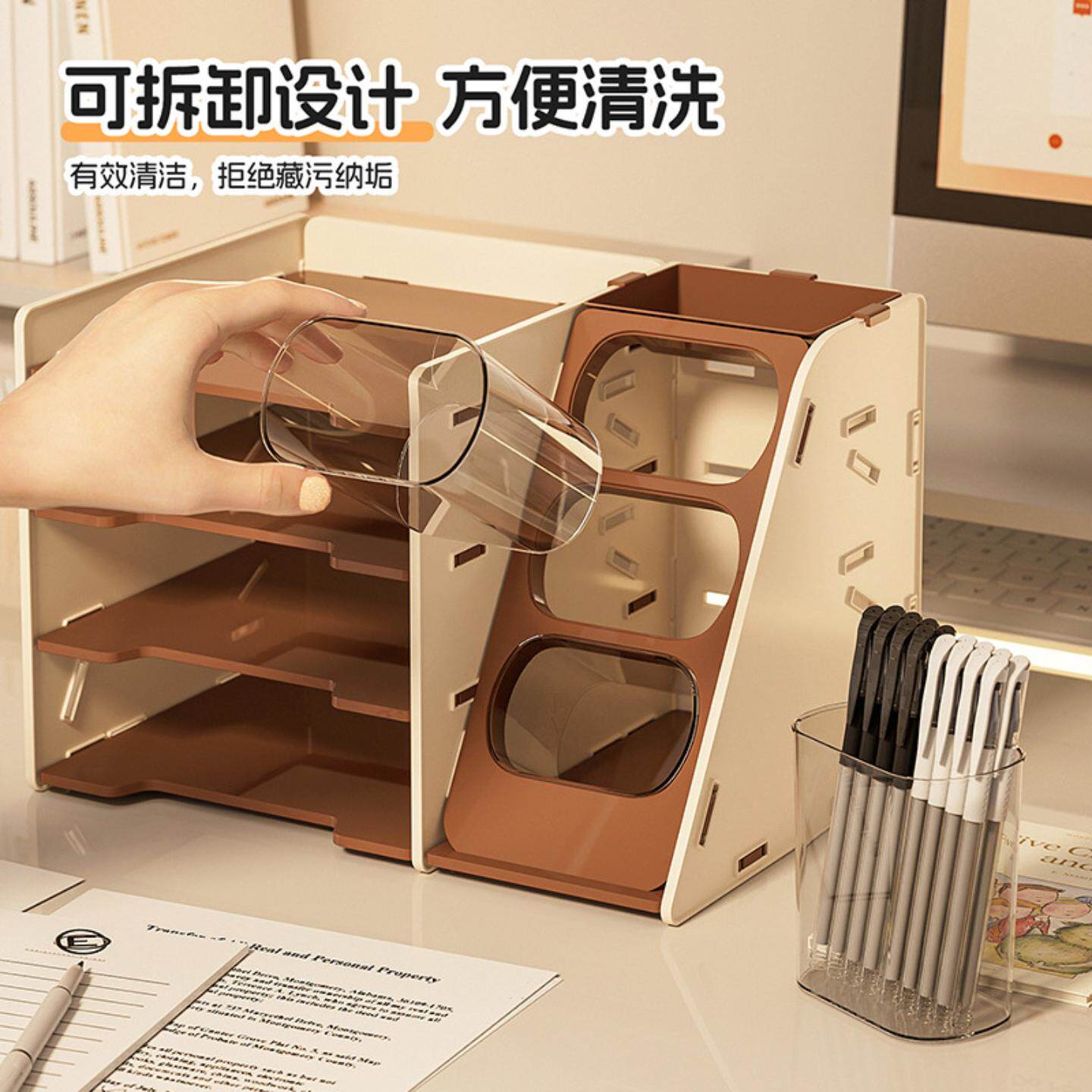 桌面收纳盒学生文件收纳柜文具书本整理架办公桌文件笔筒置物架子