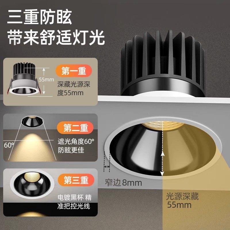 无主灯客厅照明cob防眩光射灯led筒灯轻奢天花灯家用嵌入5W7W10W