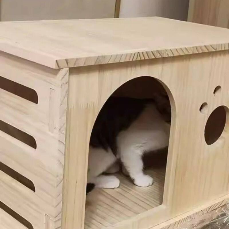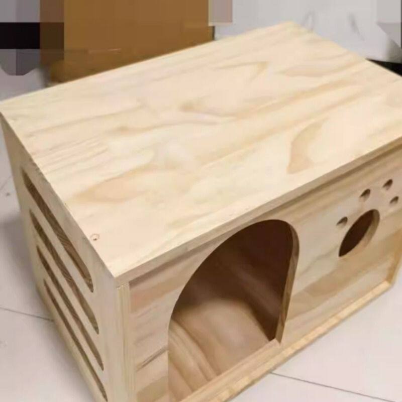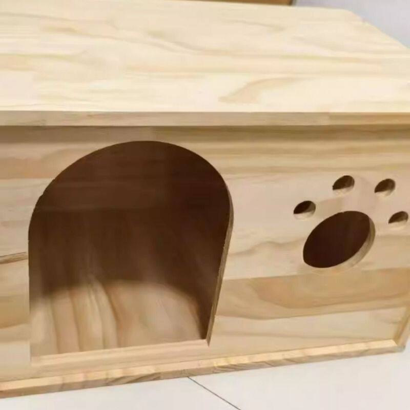 木头狗窝实木猫狗窝宠物房子木制床头一体功能床边柜宠物 产房四