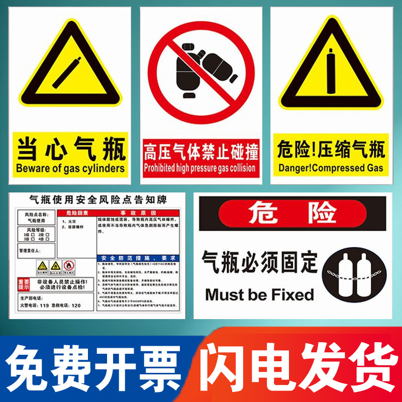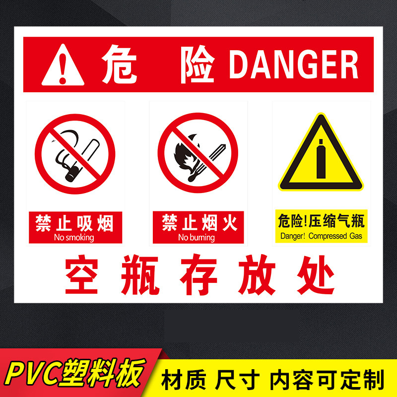 气瓶存放处当心气瓶安全标识牌 氧气瓶氩气瓶空气瓶废机油柴油汽油存放处安全标示牌车间仓库提示牌标志牌
