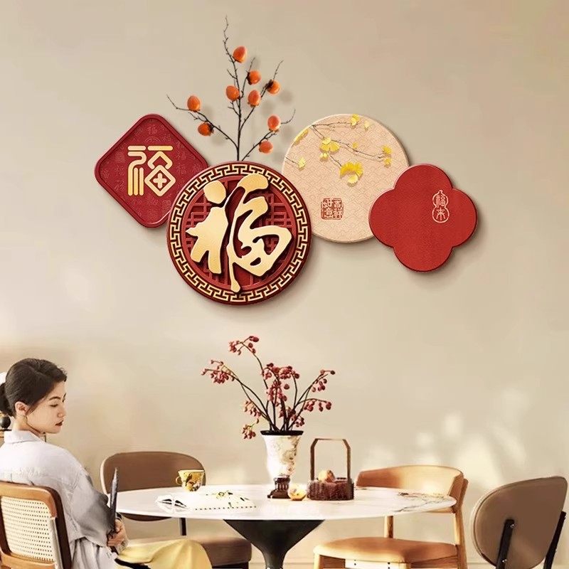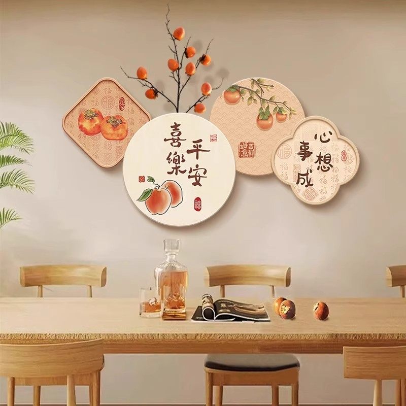 新中式餐厅装饰画饭厅墙面壁画客厅沙发背景墙挂画圆形柿柿如意画