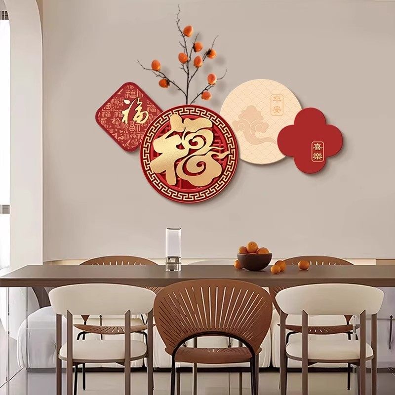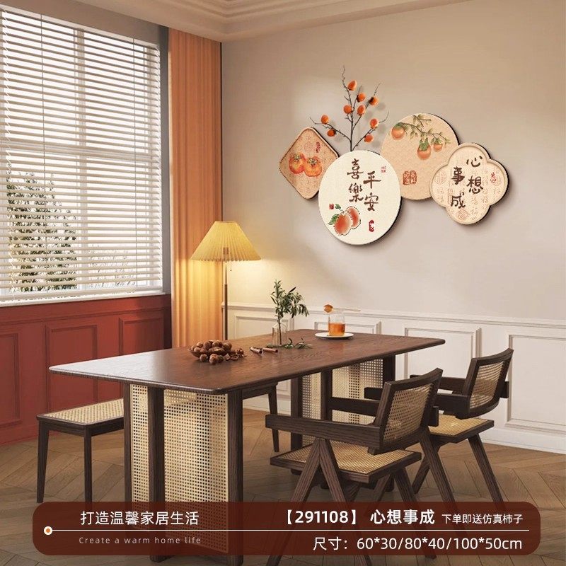 平安喜乐餐厅装饰画2025新款柿子墙壁画新中式饭厅餐桌背景墙挂画