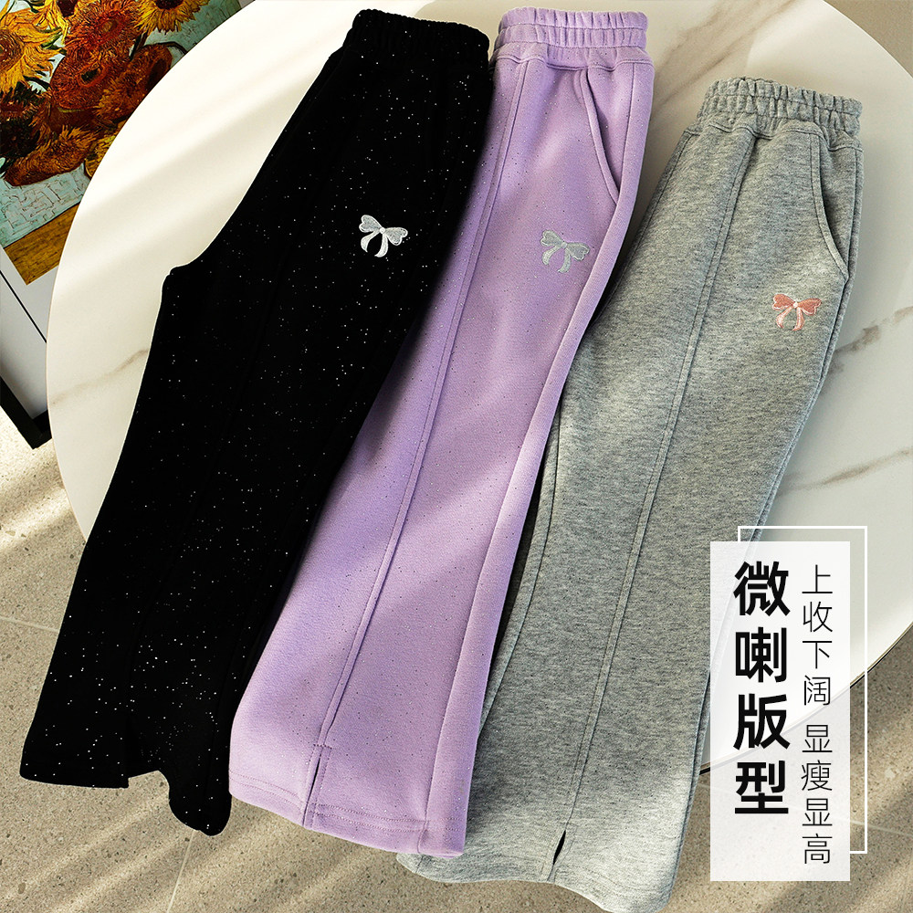 蔚未来女童裤子秋装2025新款儿童时髦喇叭裤小学生洋气撒银休闲裤