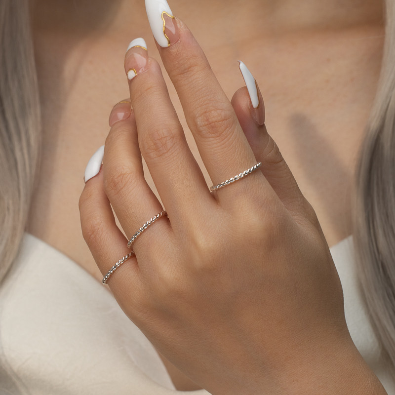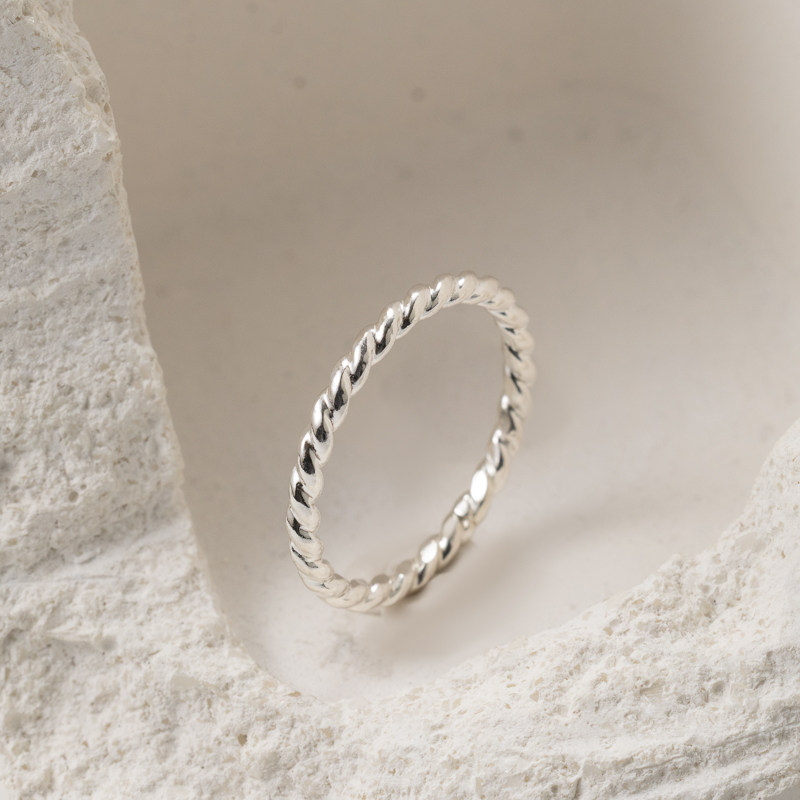 925纯银1.6mm扭纹麻花戒指女 欧美小指尾戒 高级感叠戴关节戒