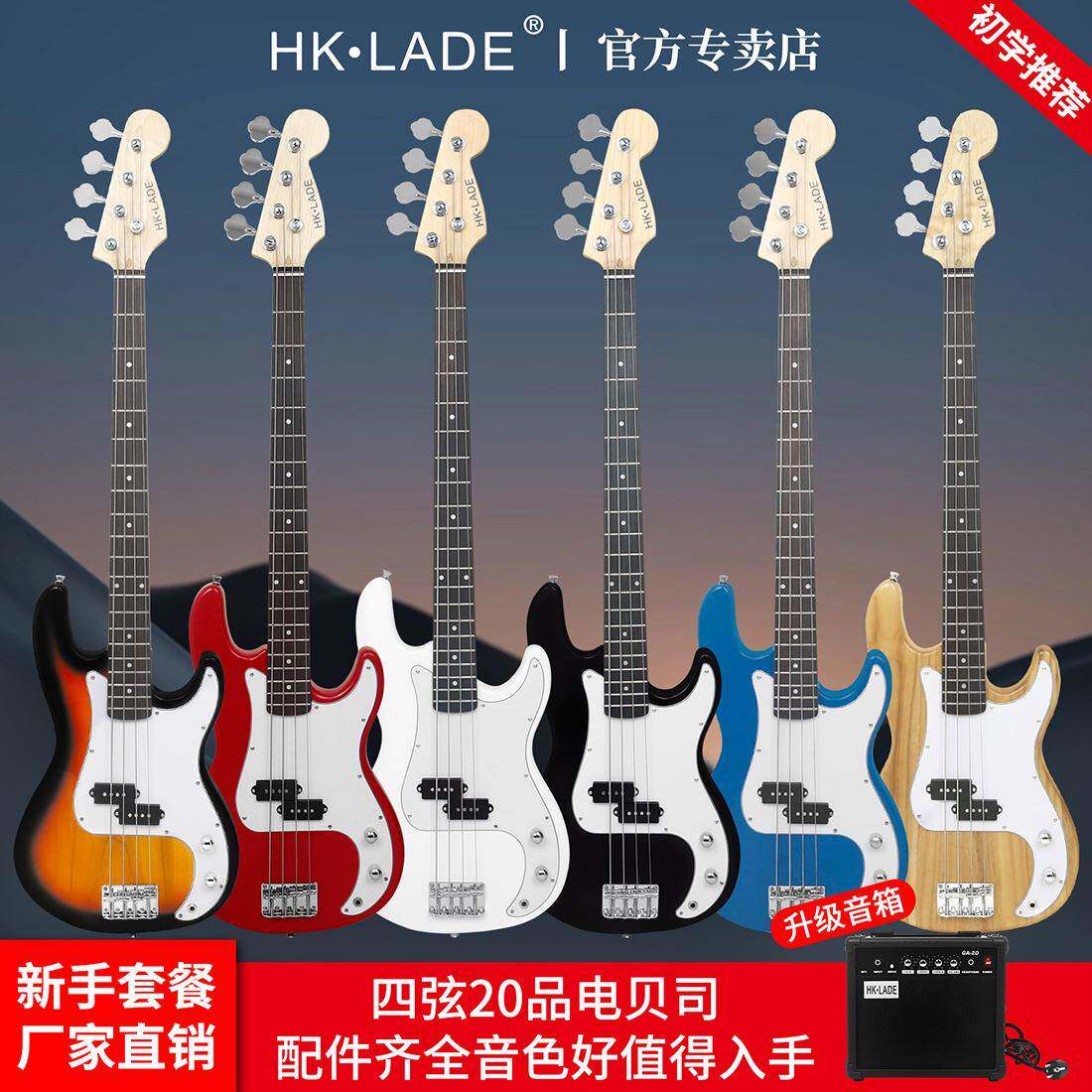 HK·LADE四弦电贝司套装4弦电贝斯学生入门摇滚乐器低音吉他贝司