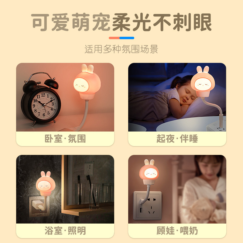小夜灯卧室睡眠灯儿童床头灯插电款卧室台灯LED带开关墙壁灯老人