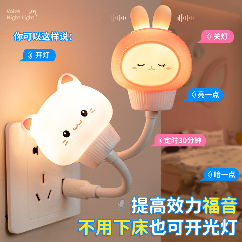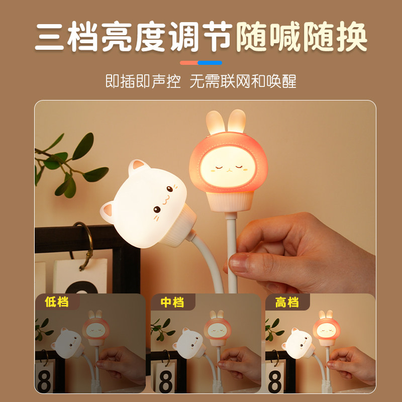 声控感应usb小夜灯人工智能语音控制卧室床头睡眠家用儿童房台灯